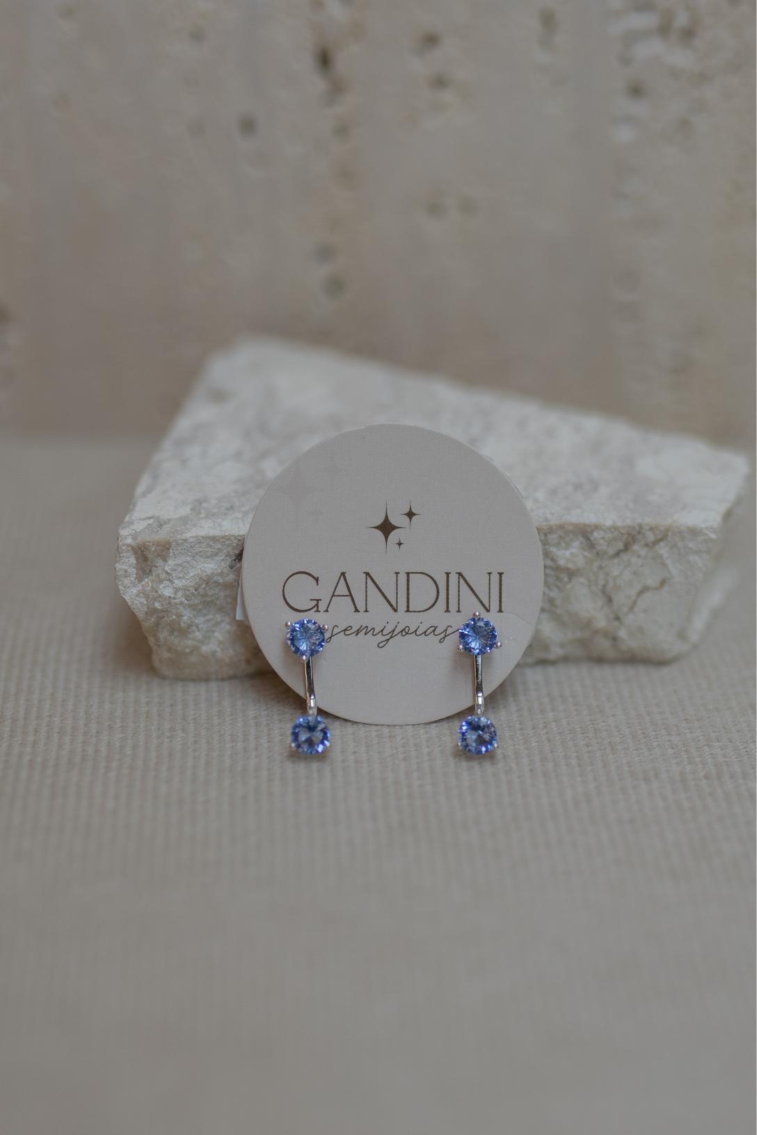 Brinco Ear Jacket London Blue Prata 925 Ródio Branco