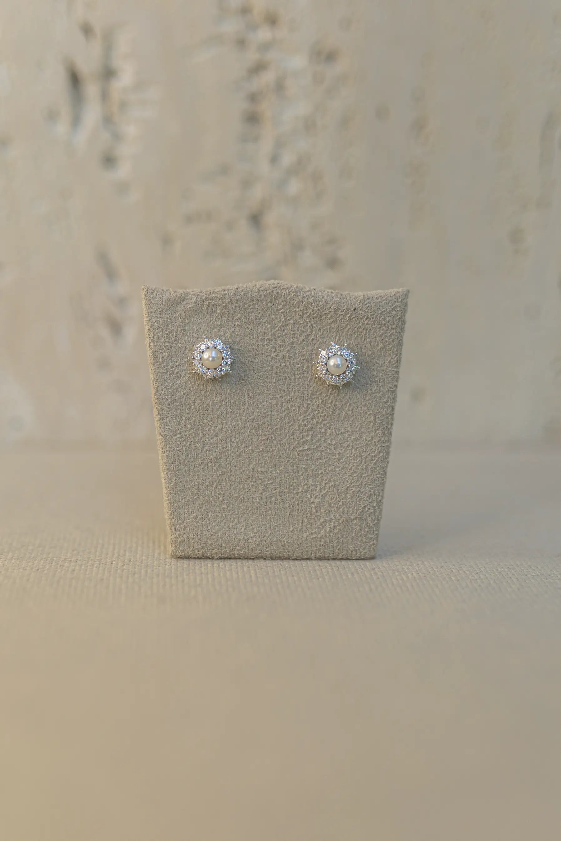 Brinco redondo com borda de zircônias na prata 925 e banho de ródio branco.
