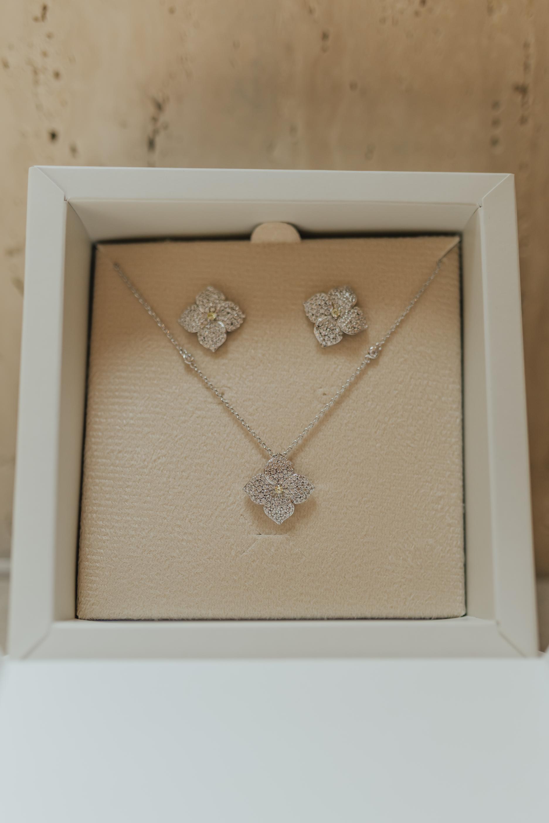 Brinco Flor 4 petálas cravejado com zircônias cristal e citrino no banho de ródio branco.