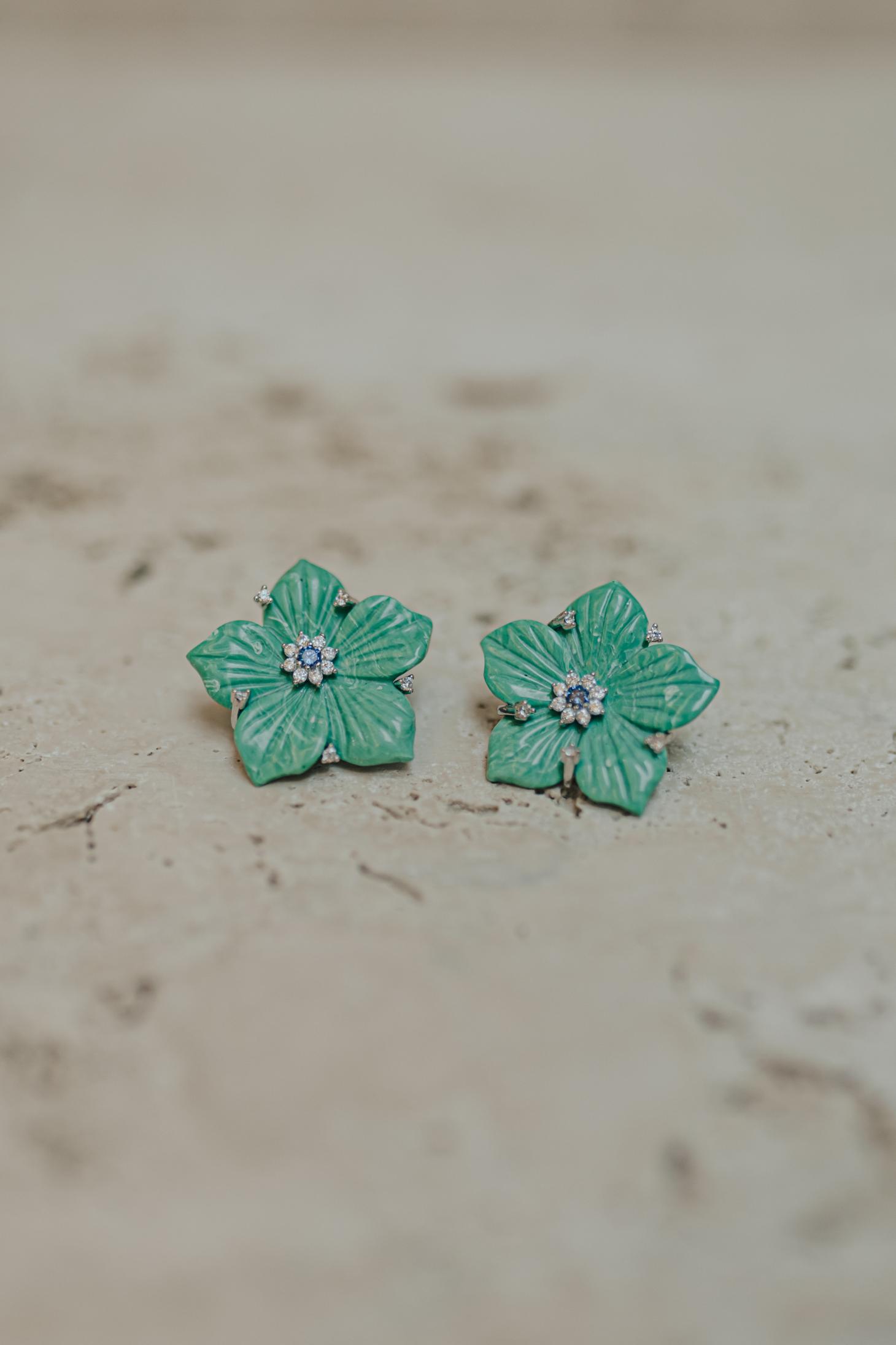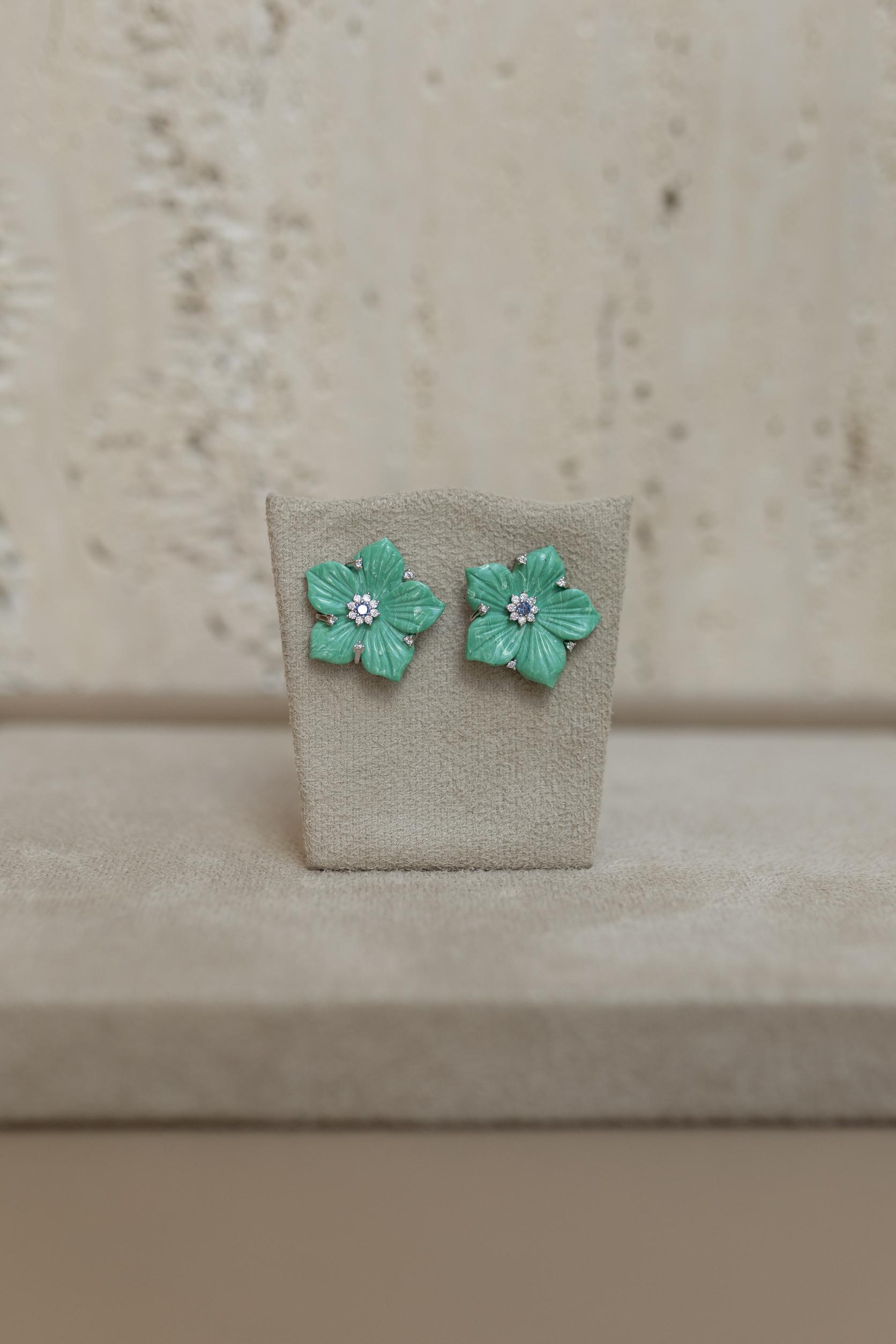 Brinco Flor 5 Pétalas Baquelite Verde Prata 925 Ródio Branco