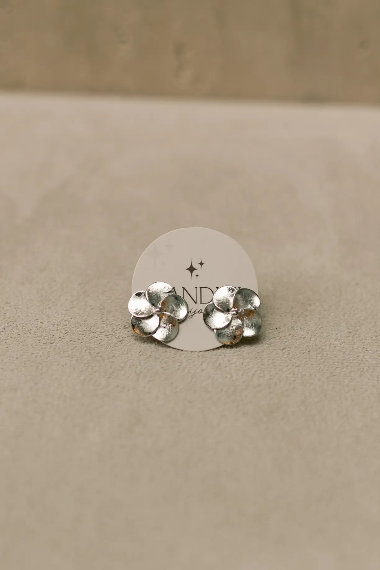 Brinco flor escovada 5 pétalas no banho de ródio branco.