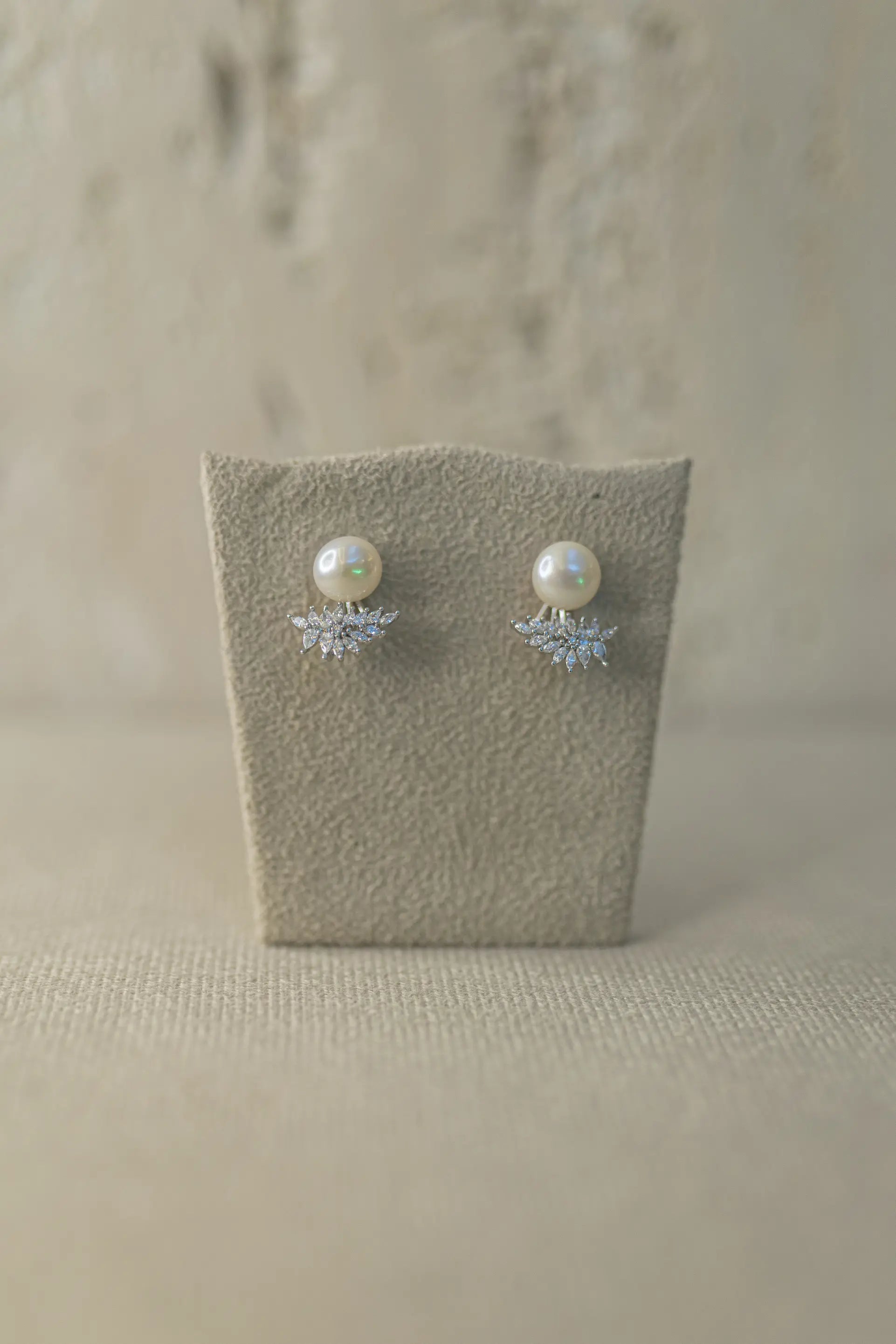 Brinco Flor Navete com Pérola Natural Ródio Branco