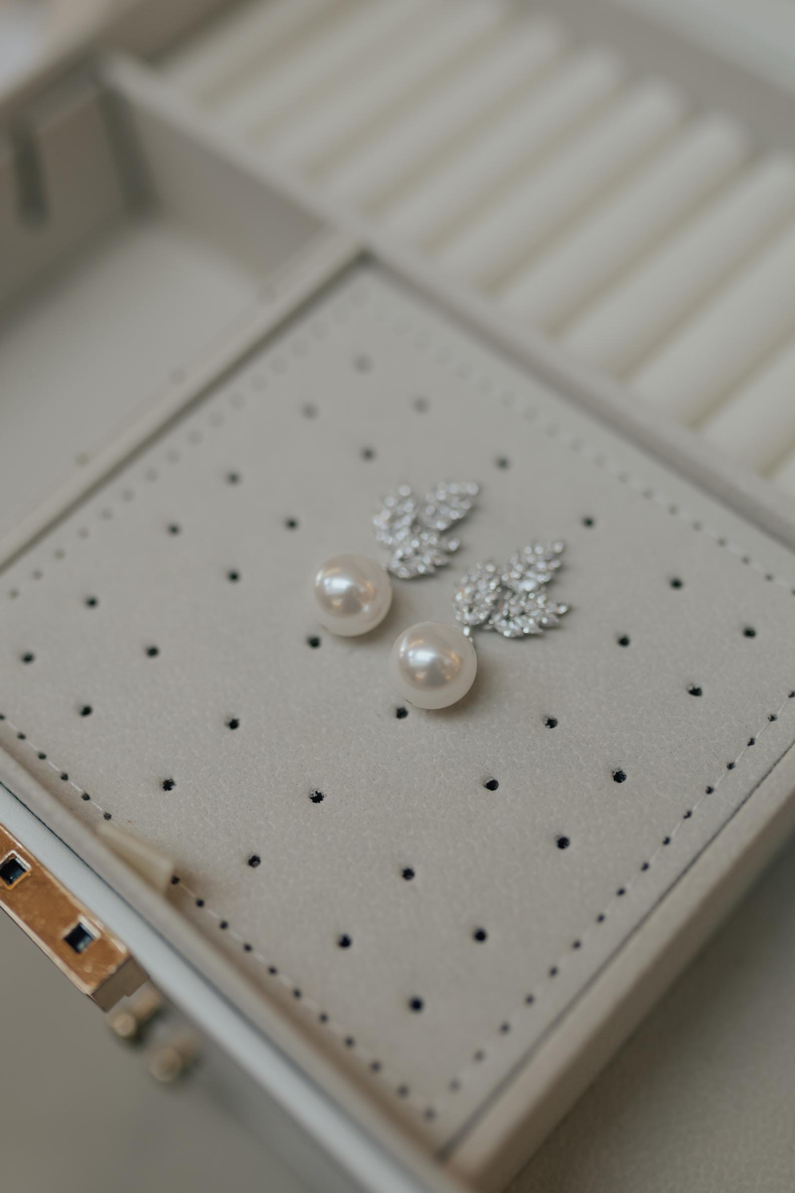 Brinco Folhas Navete Cristal Pérola Pêndulo Prata 925