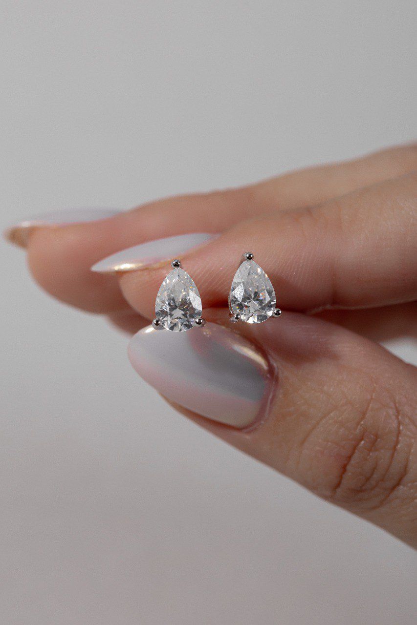 Brinco Gota na prata 925 com pedra Moissanite no banho de ródio branco.