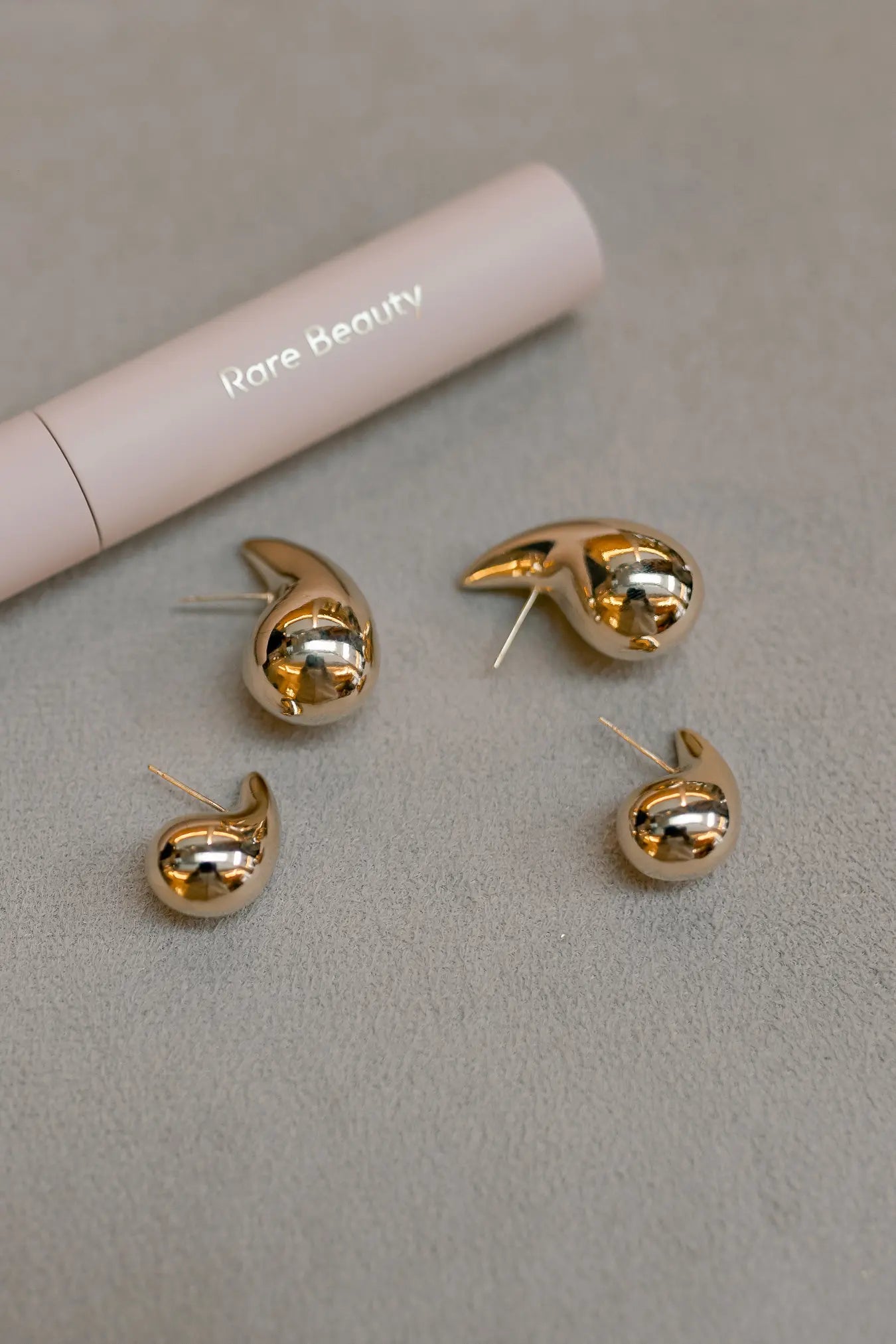 Brinco Gota Oca de eletroformação no tamanho maior no banho de ouro 18k.