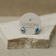 Brinco de gota safira com borda cravejada de zircônias na cor cristal, no banho de ródio branco.