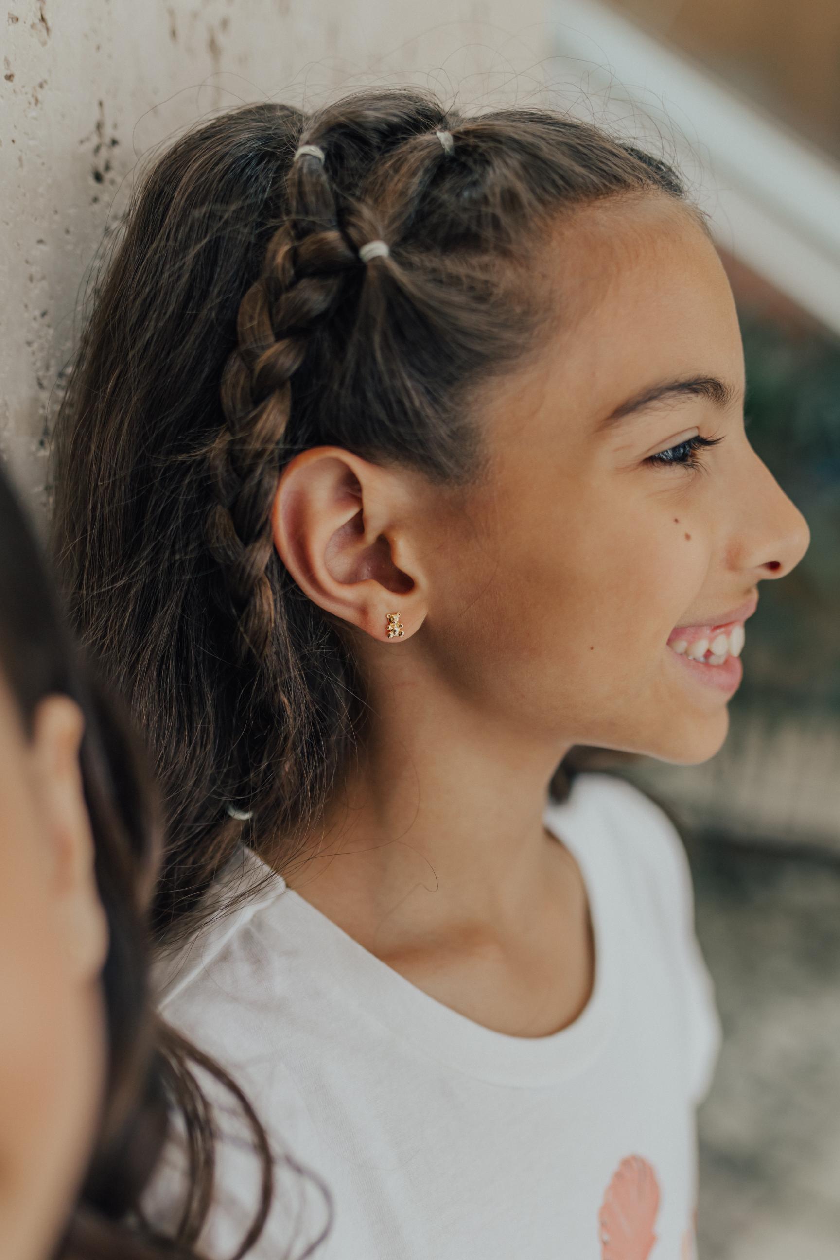 Brinco infantil no formato de urso liso com tarraxa infantil no banho de ouro18k.