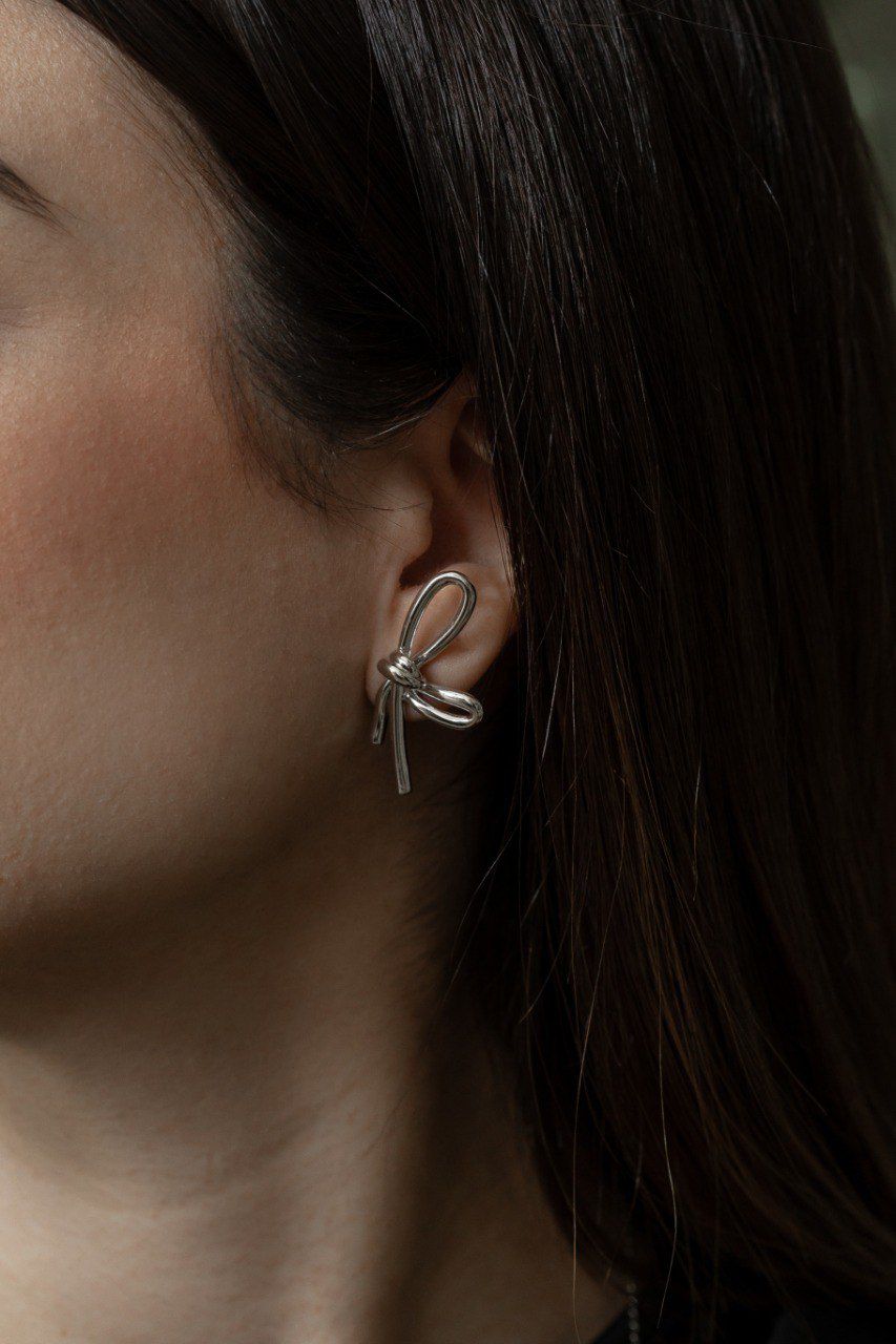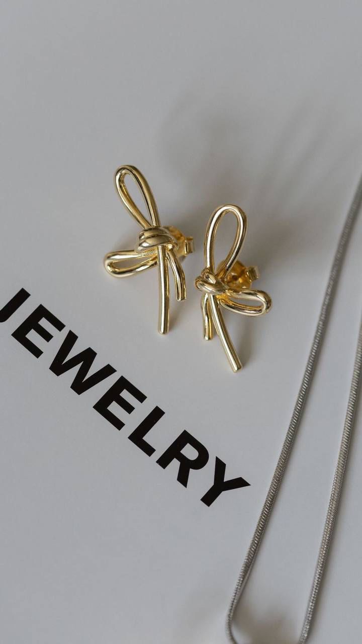 Brinco de laço liso descontruído no banho de ouro 18k.