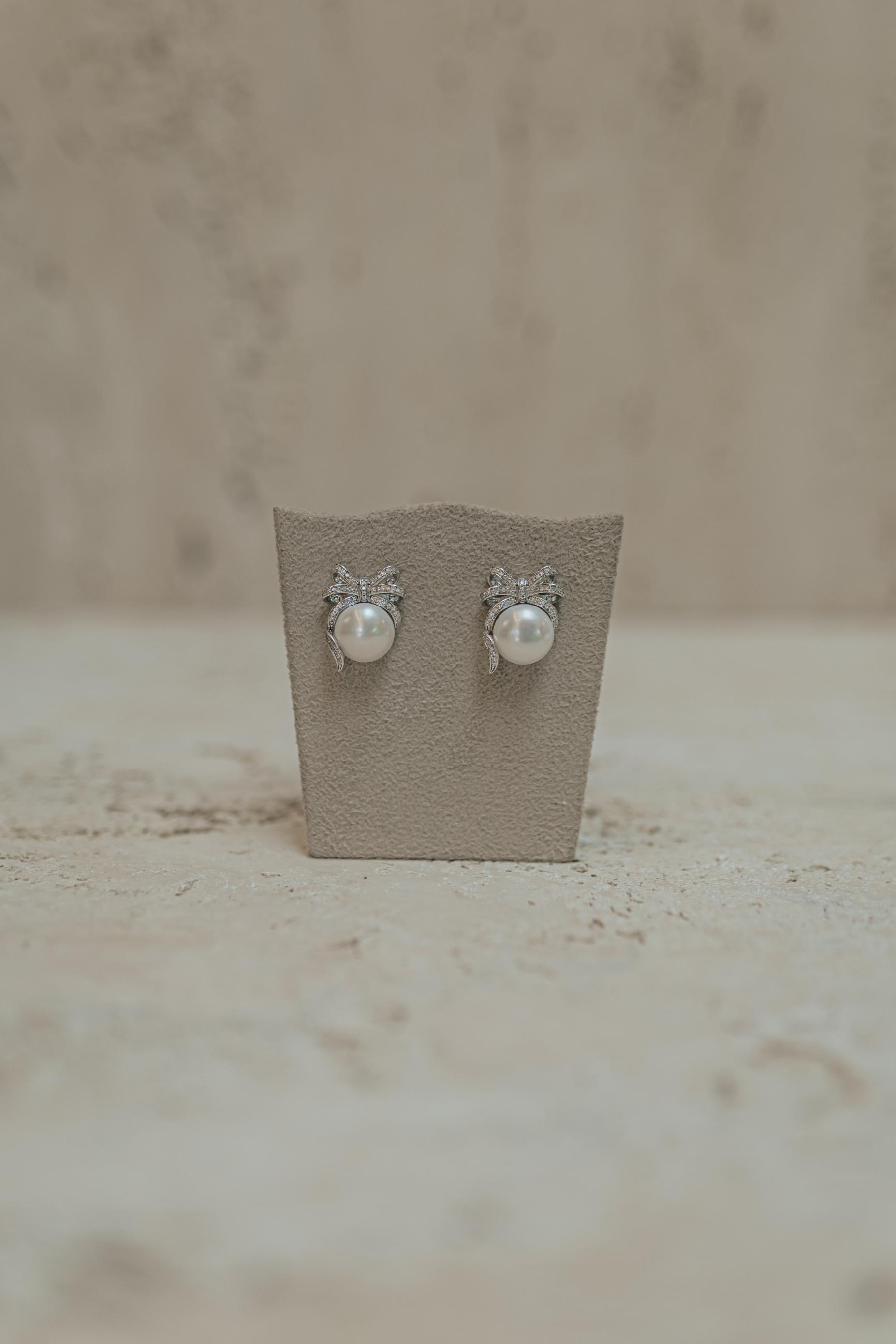 Brinco com laço todo cravejado com microzircônias na cor cristal na prata 925 e banho de ródio branco.