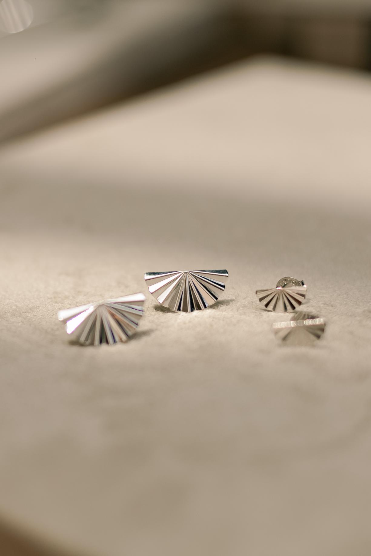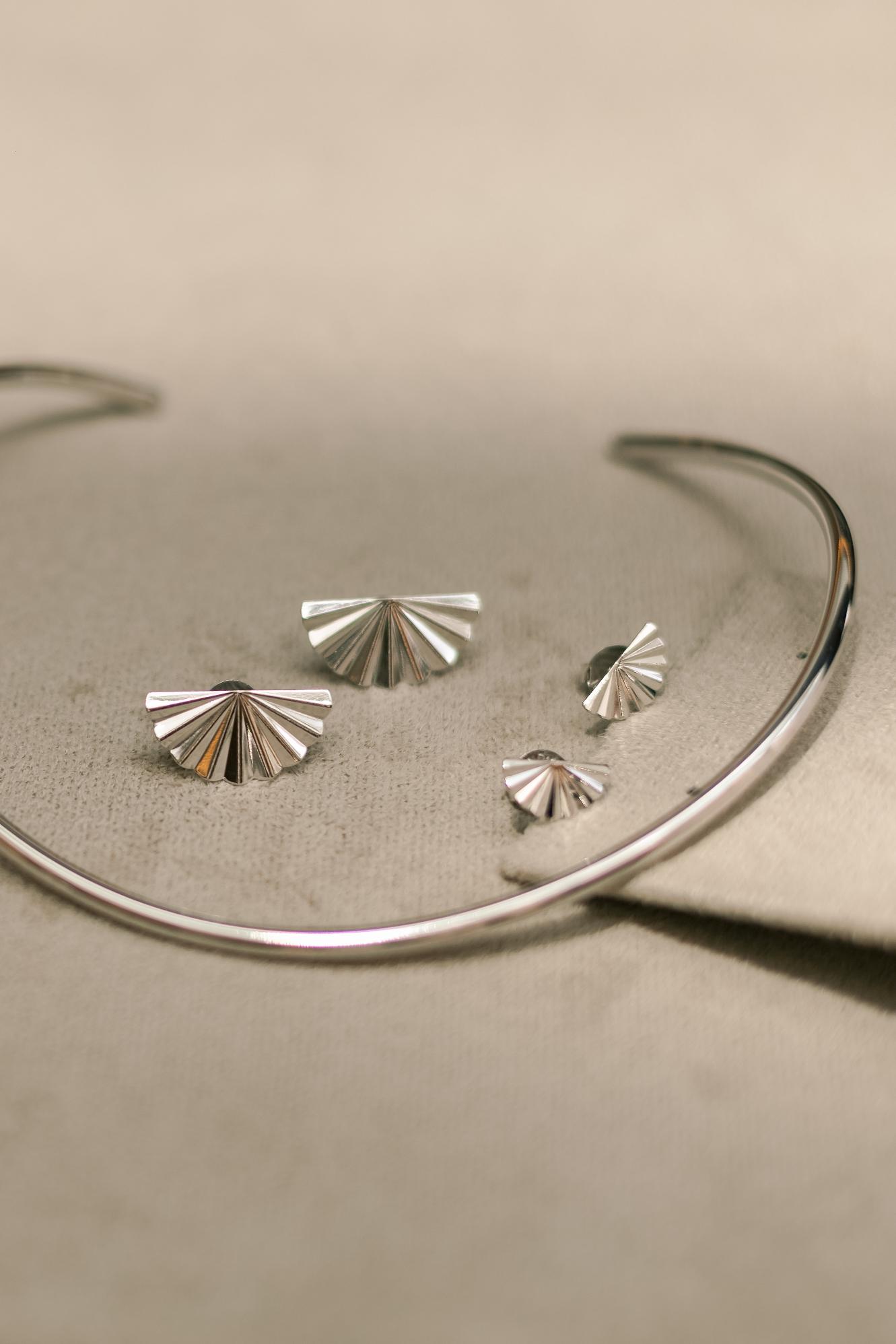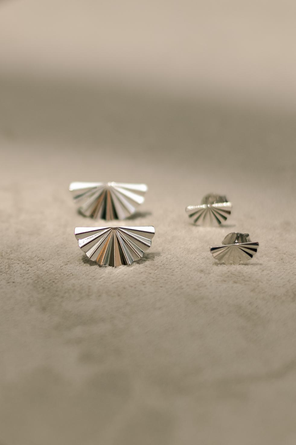 Brinco em formato de leque no banho de ródio branco.