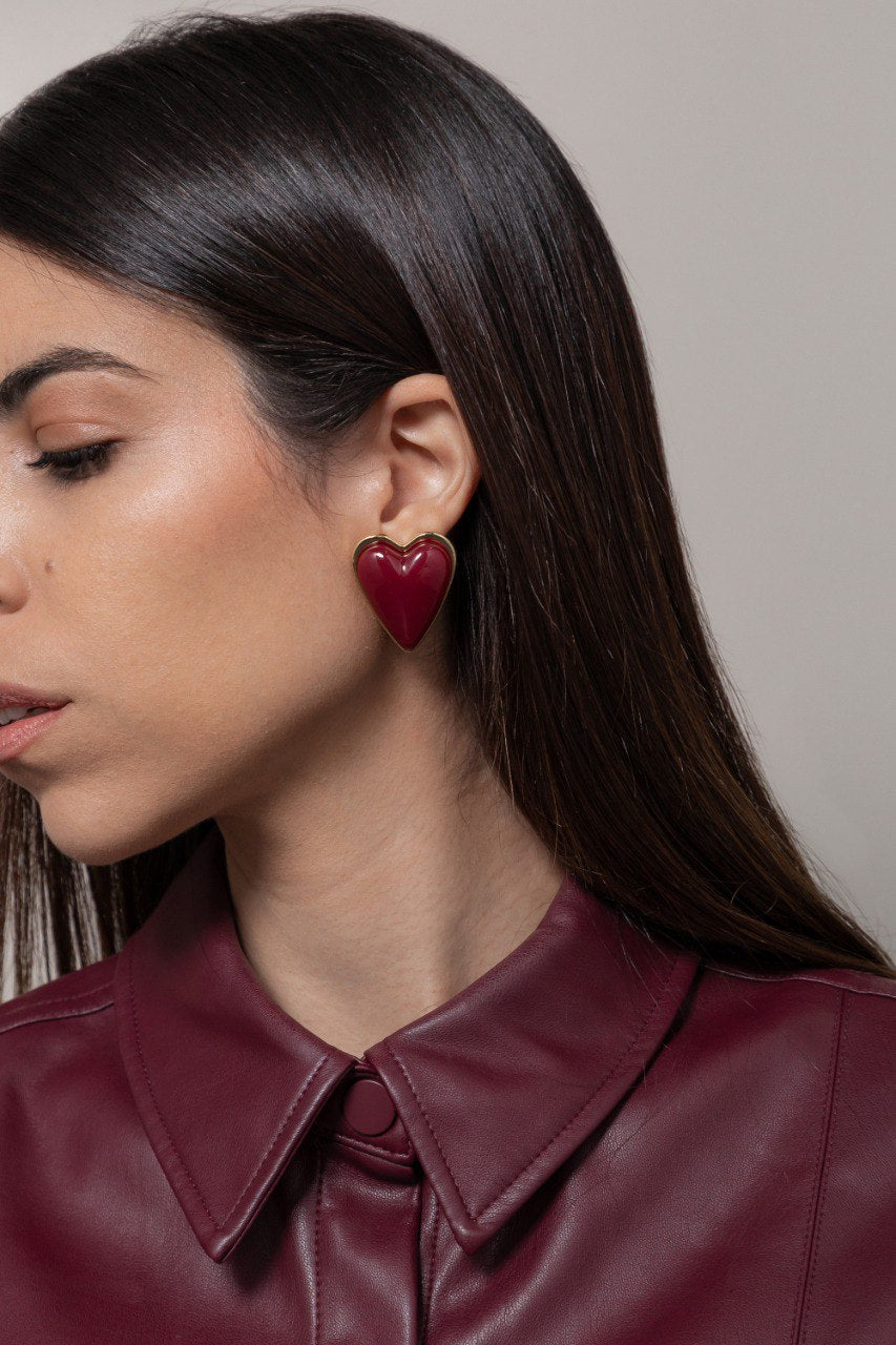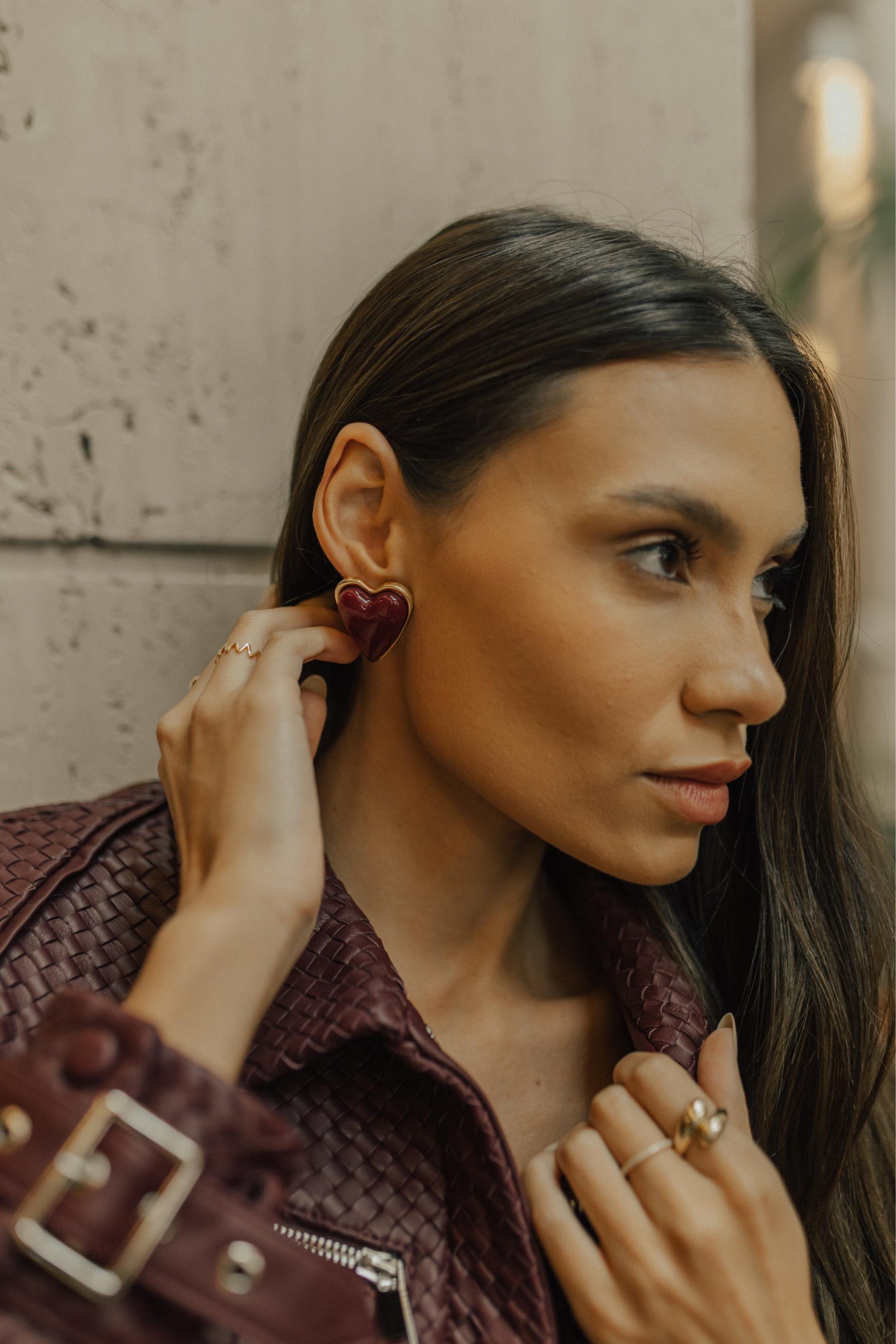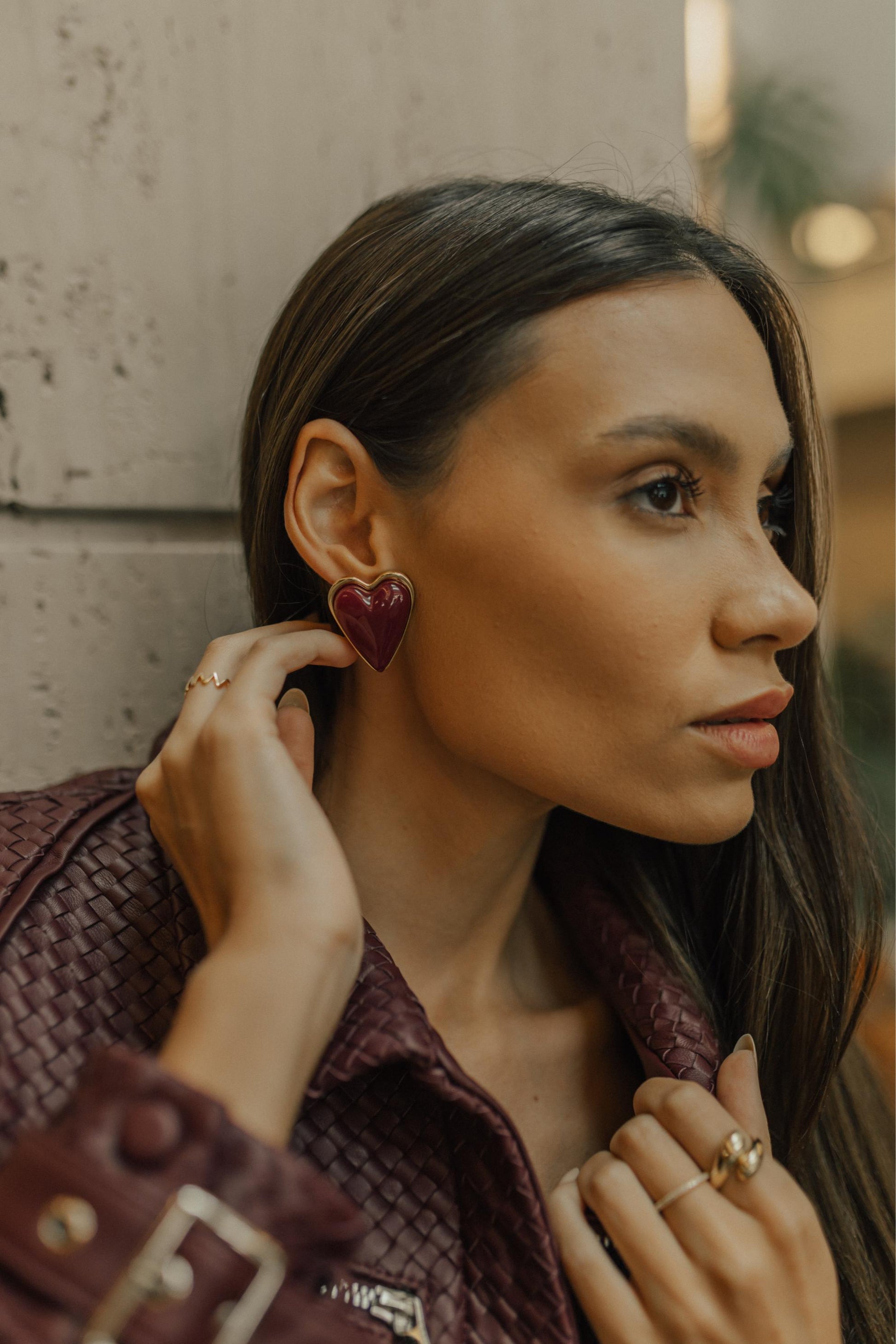 Brinco Maxi com resina burgundy no banho de ouro 18k.