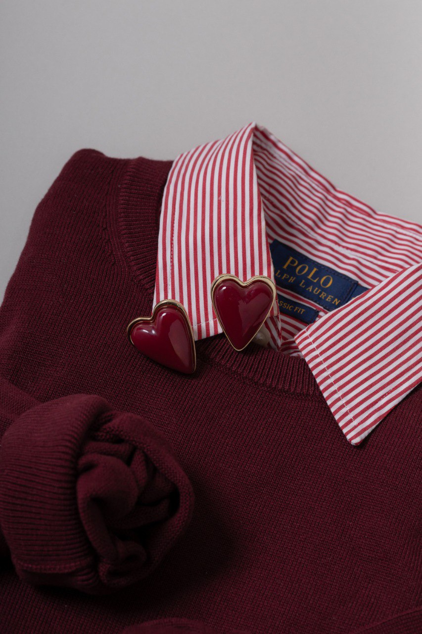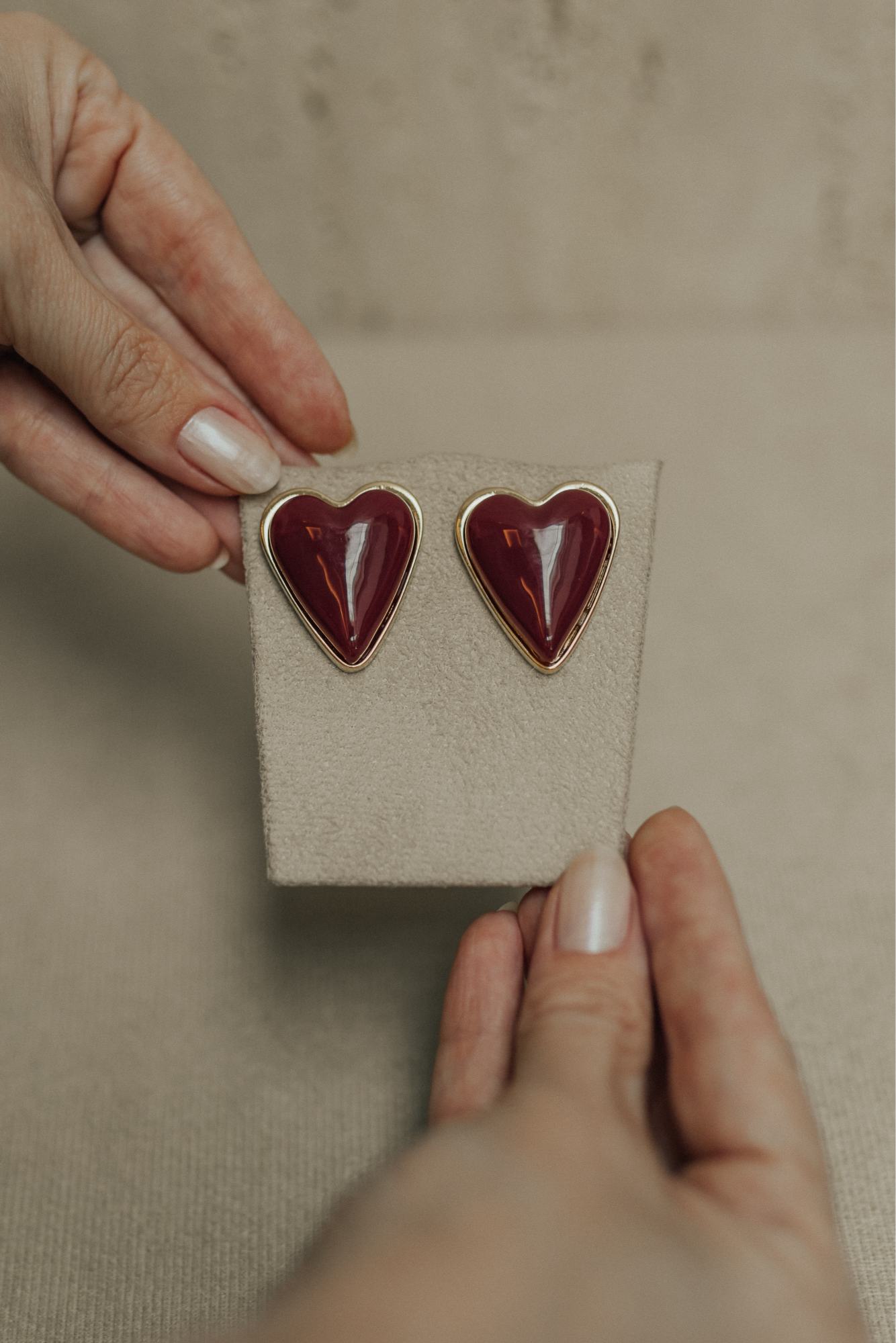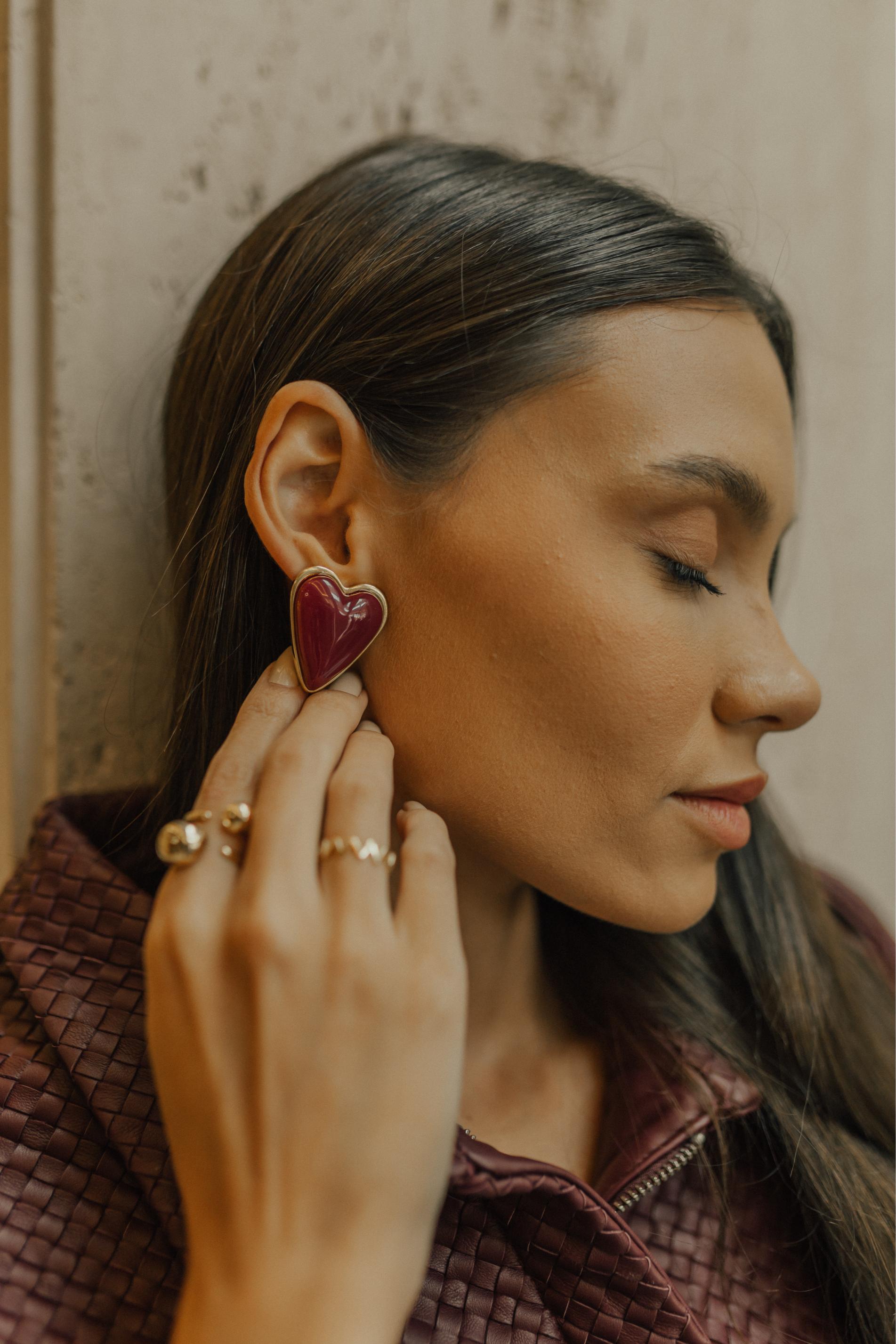 Brinco Maxi com resina burgundy no banho de ouro 18k.