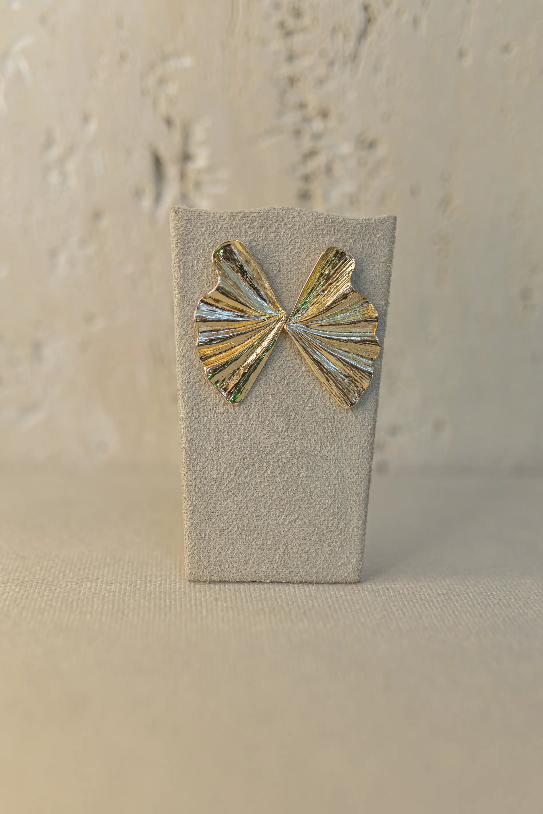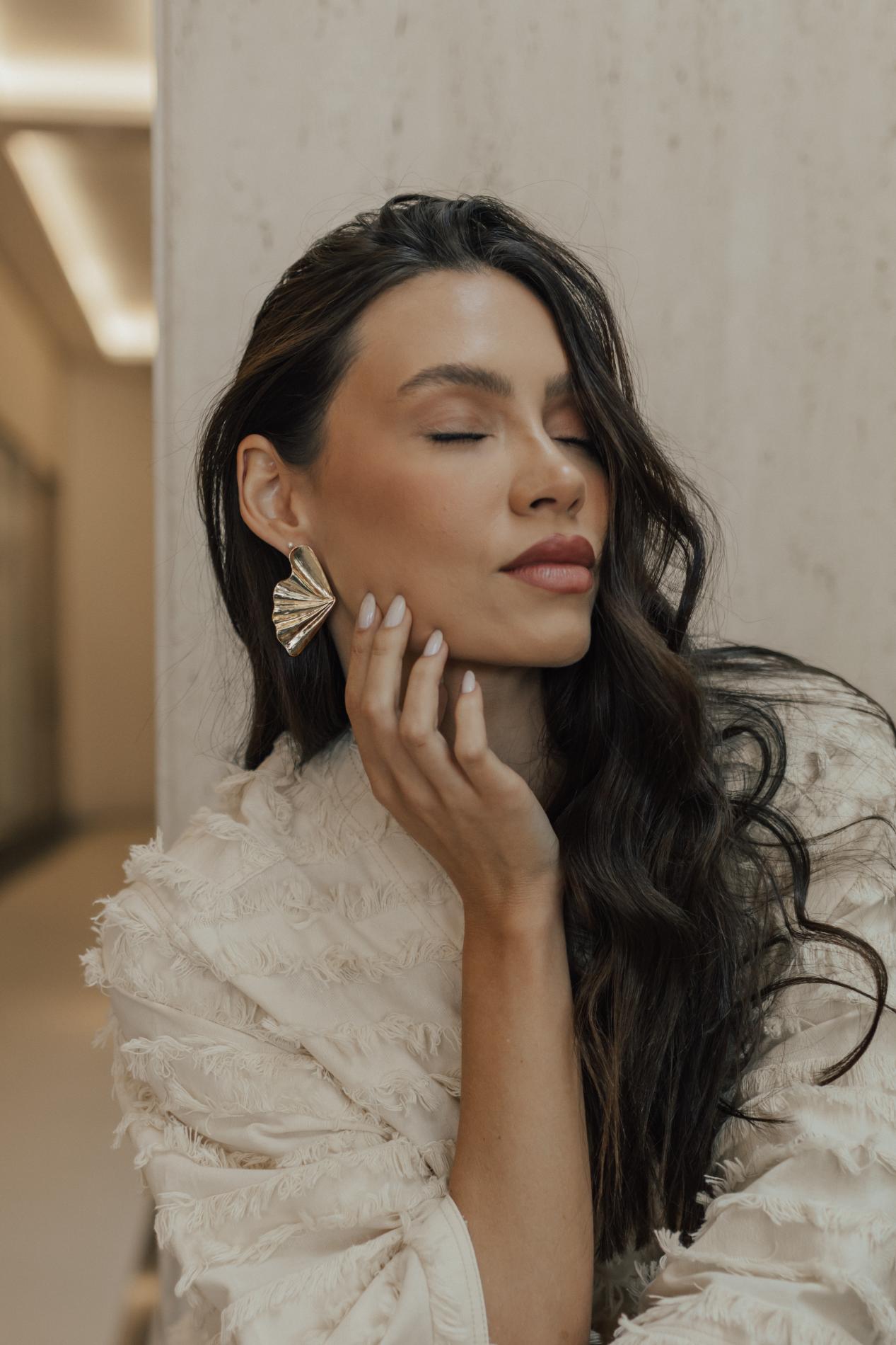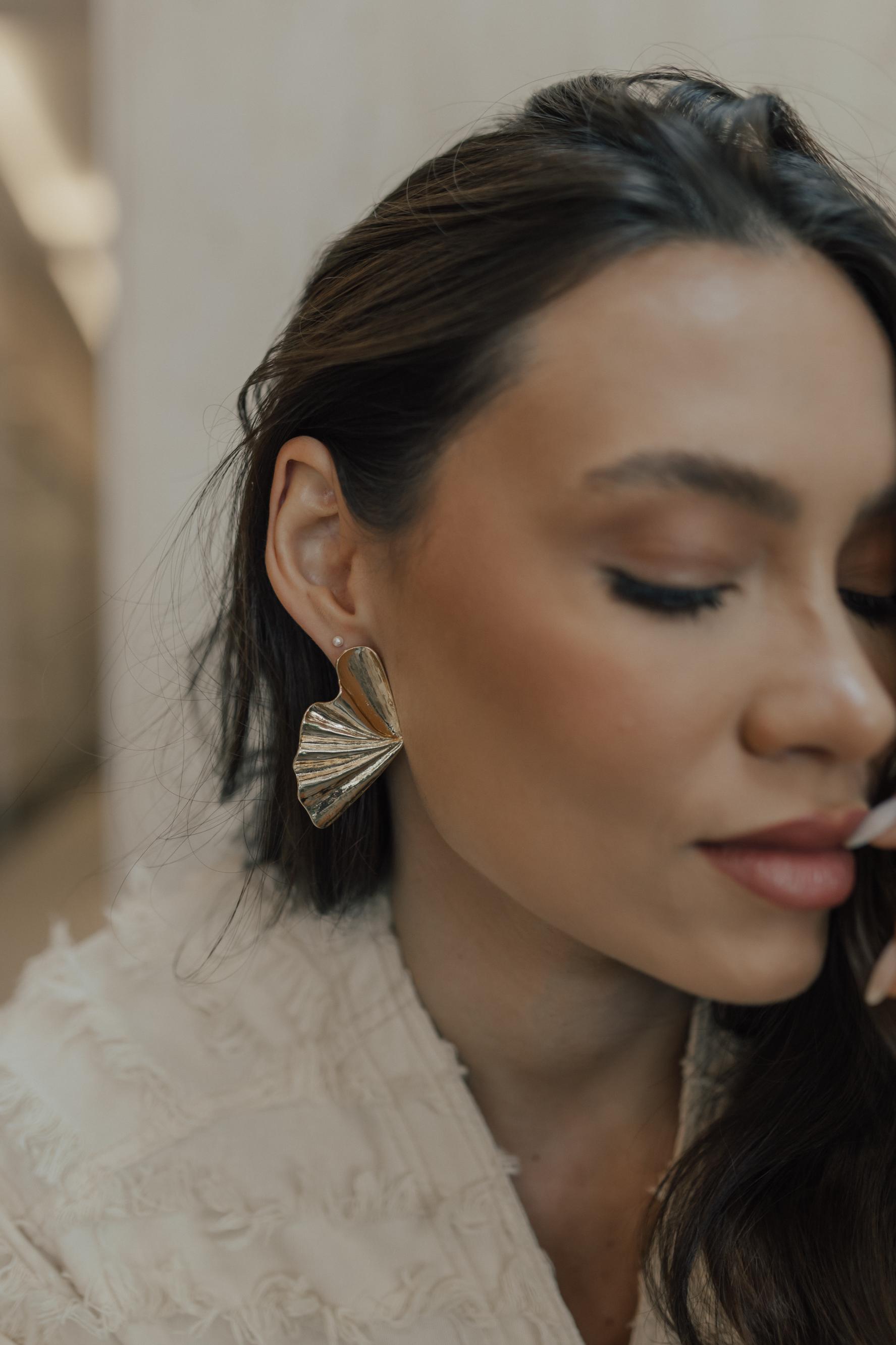Brinco maxi estilo leque no banho de ouro 18k.