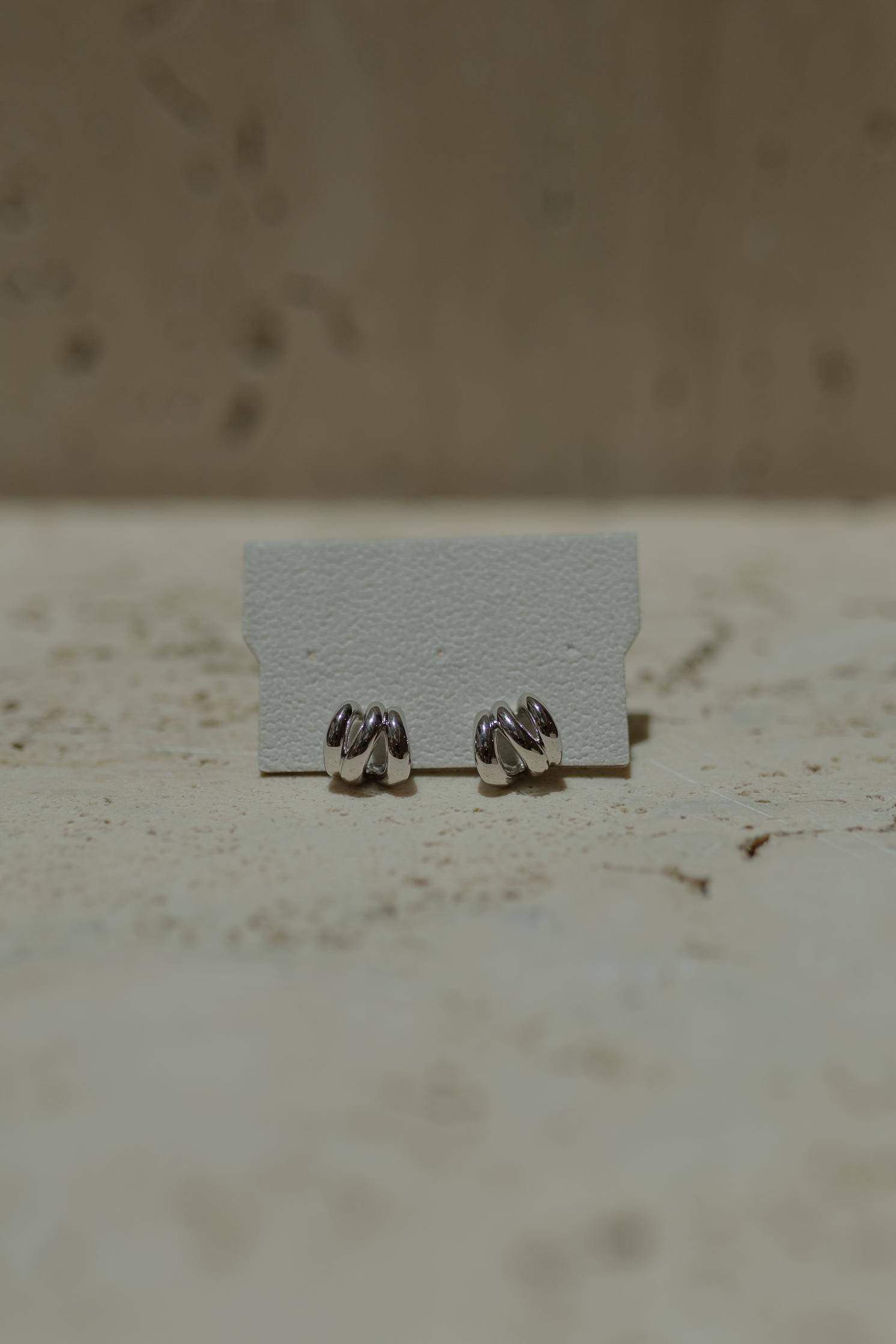 Brinco argola com pino de 3 fileiras no banho de ródio branco.