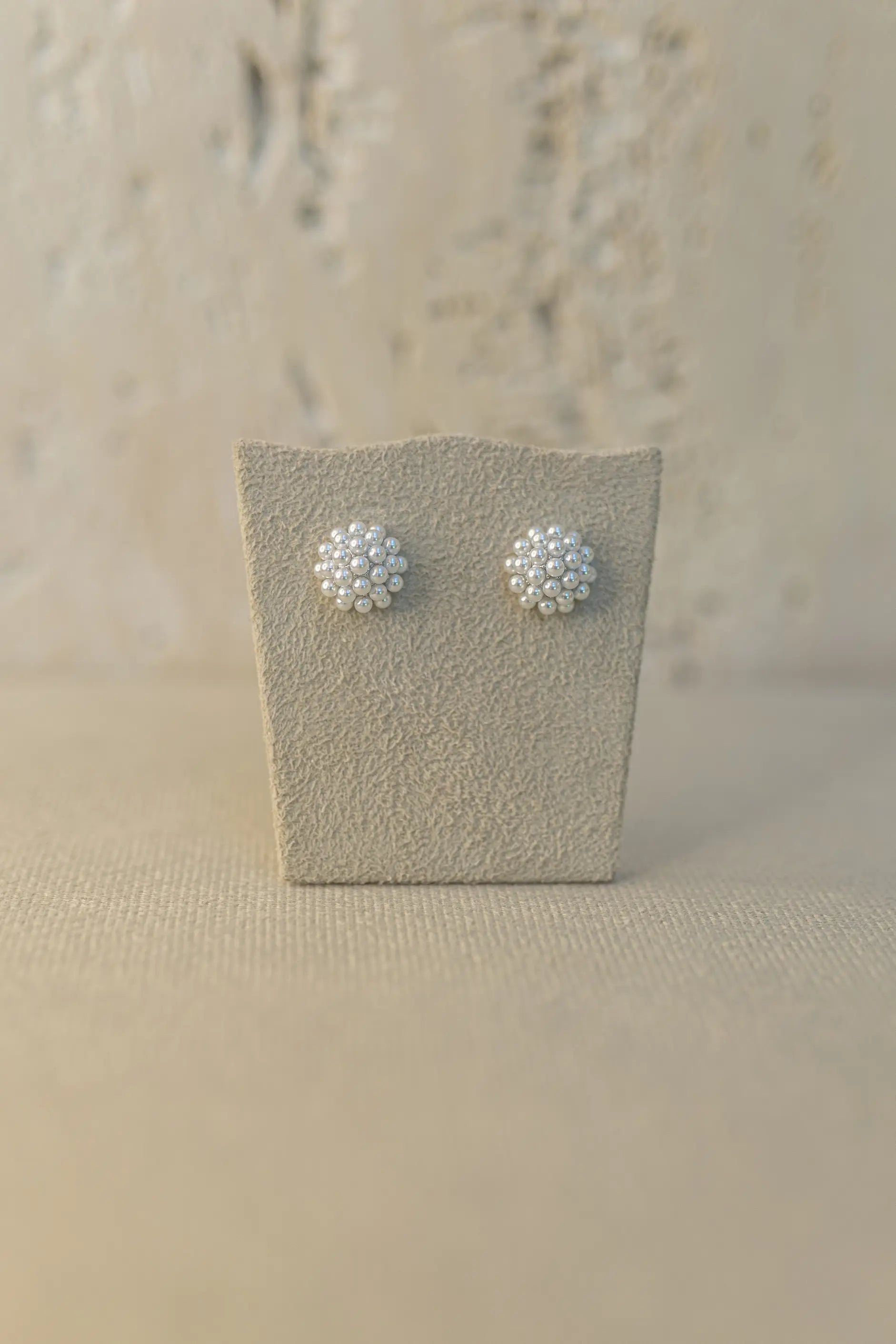 Este brinco apresenta formato geométrico de meia esfera com pino central e micropérolas em toda a sua superfície, modelo atemporal no banho de ródio branco.