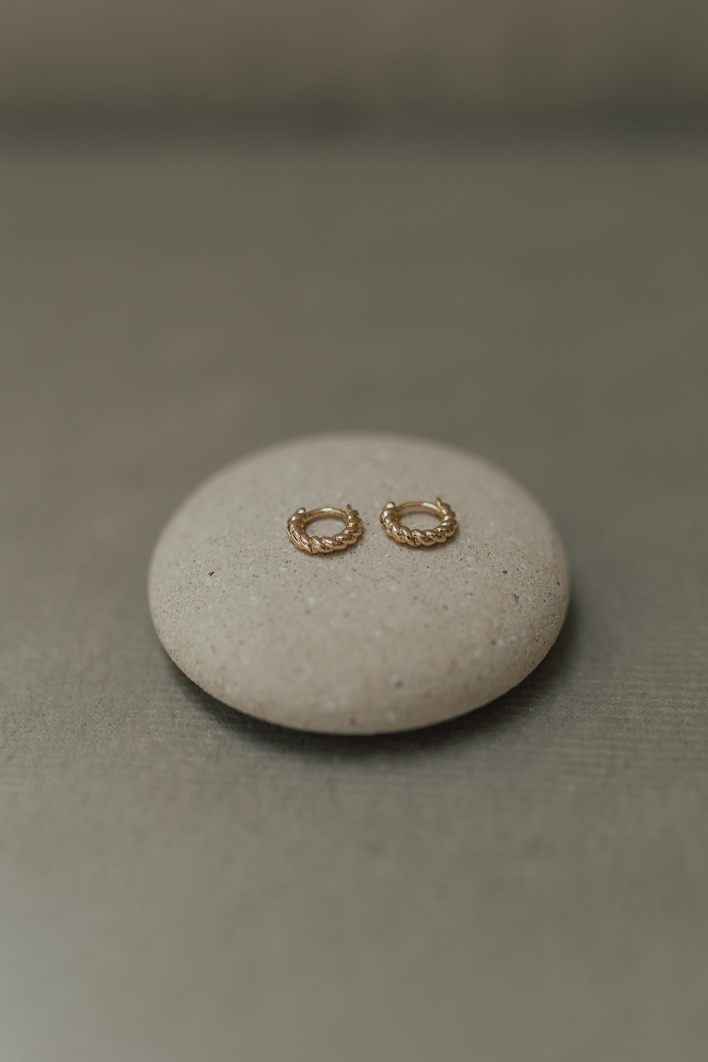 Brinco argola com abacamento liso e design torcido no banho de ouro 18k.