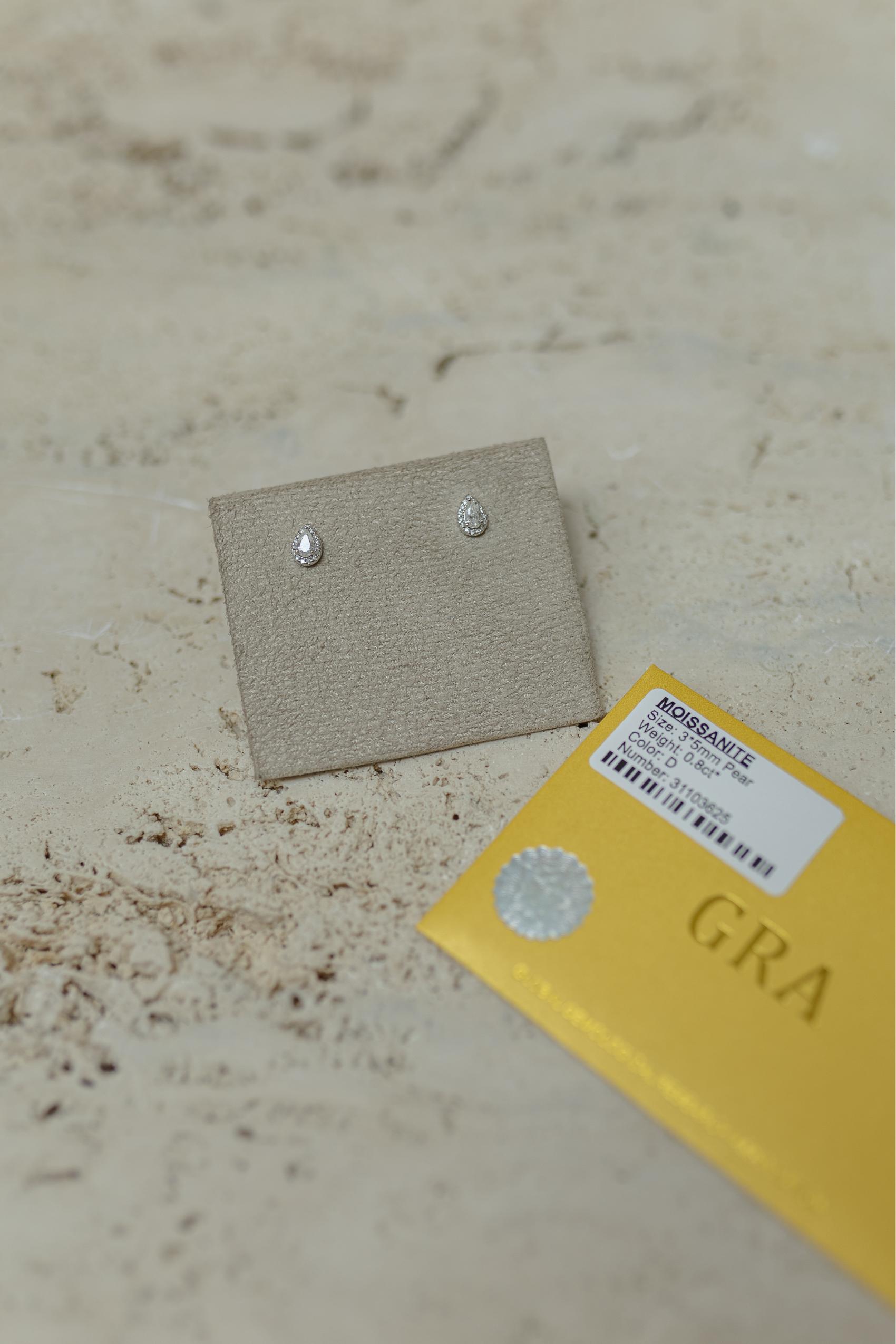 Brinco Mini Gota Cravejado Moissanite Prata 925 Ródio Branco