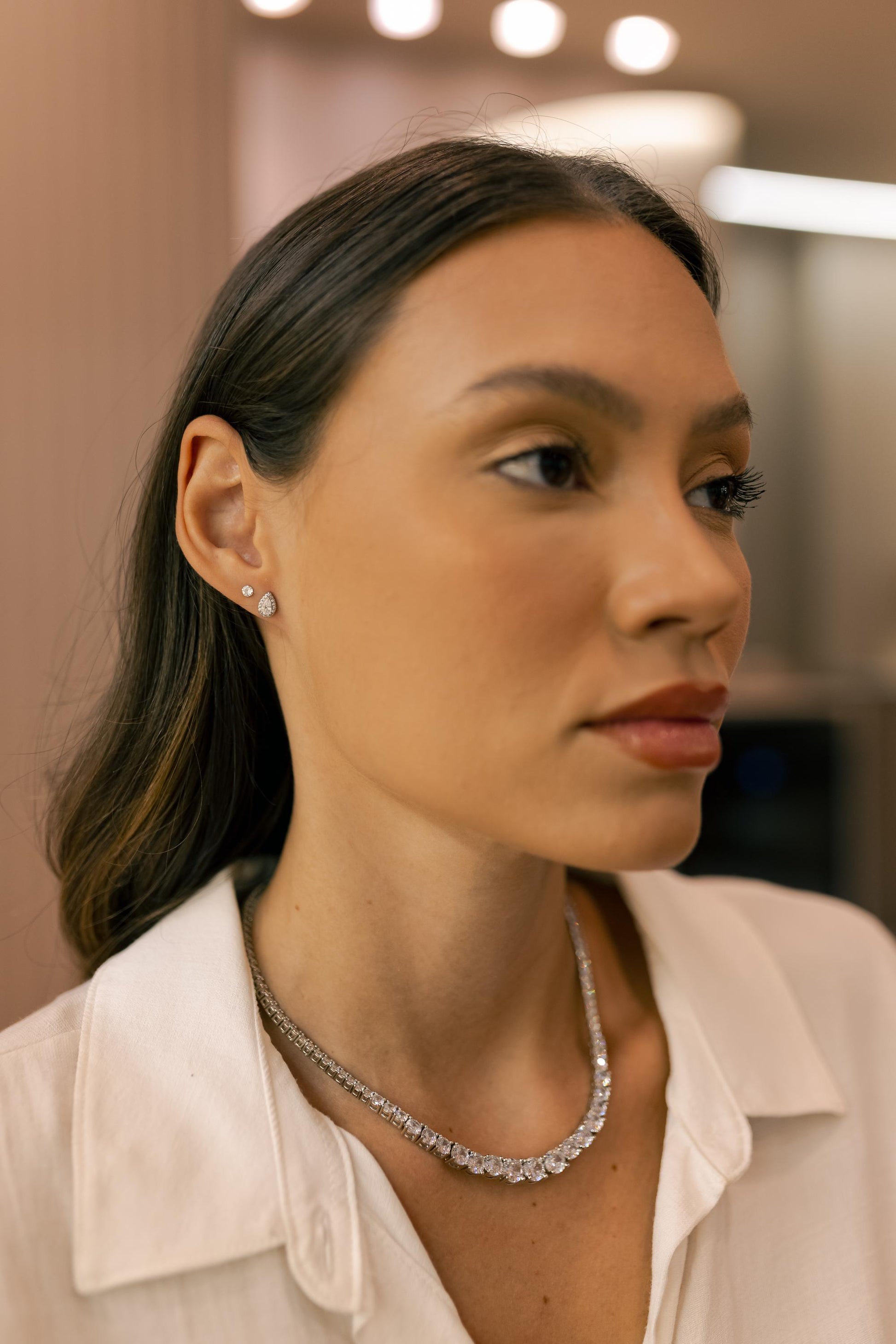 Brinco mini gota cristal com borda cravejada no banho de ródio branco.