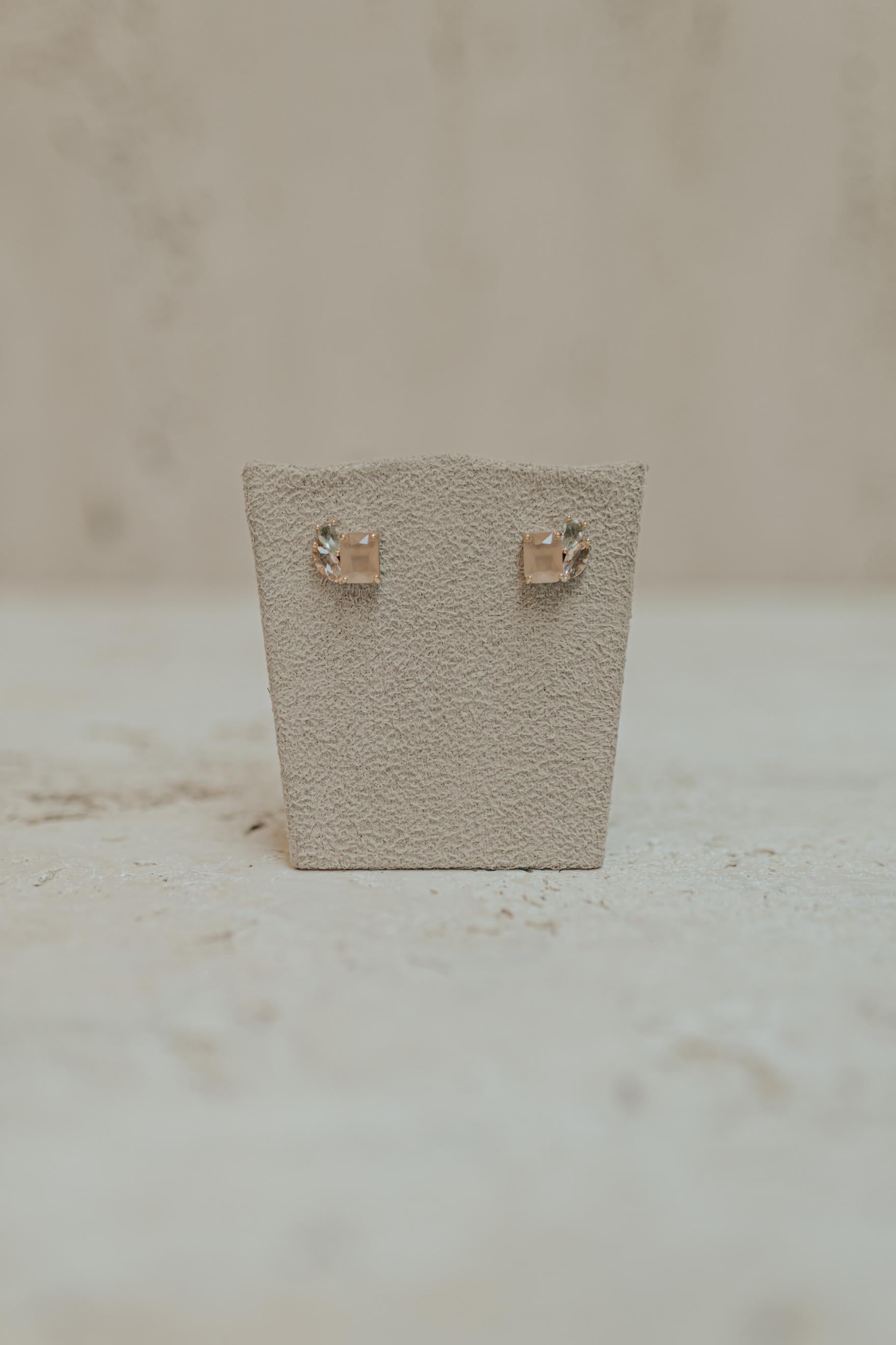 Brinco com pedra morganita com 2 gotinhas morganita cristal e verde no banho de ouro 18k.