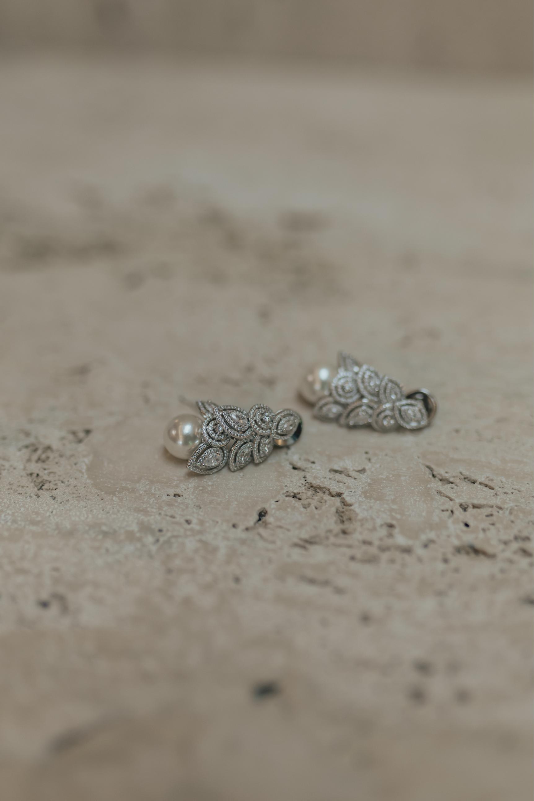 Brinco Noiva Pérola Cristal Prata 925 Ródio Branco