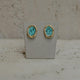 Brinco no formato orgânico com couro de peixe tingido na cor azul no banho de ouro 18k.