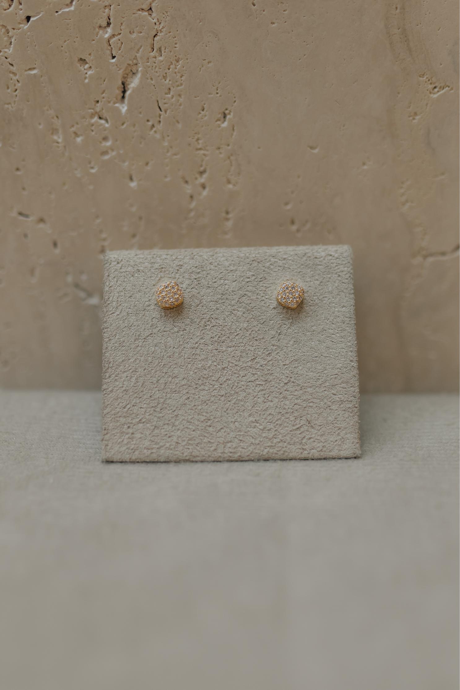 Brinco no formato orgânico todo cravejado no banho de ouro 18k.
