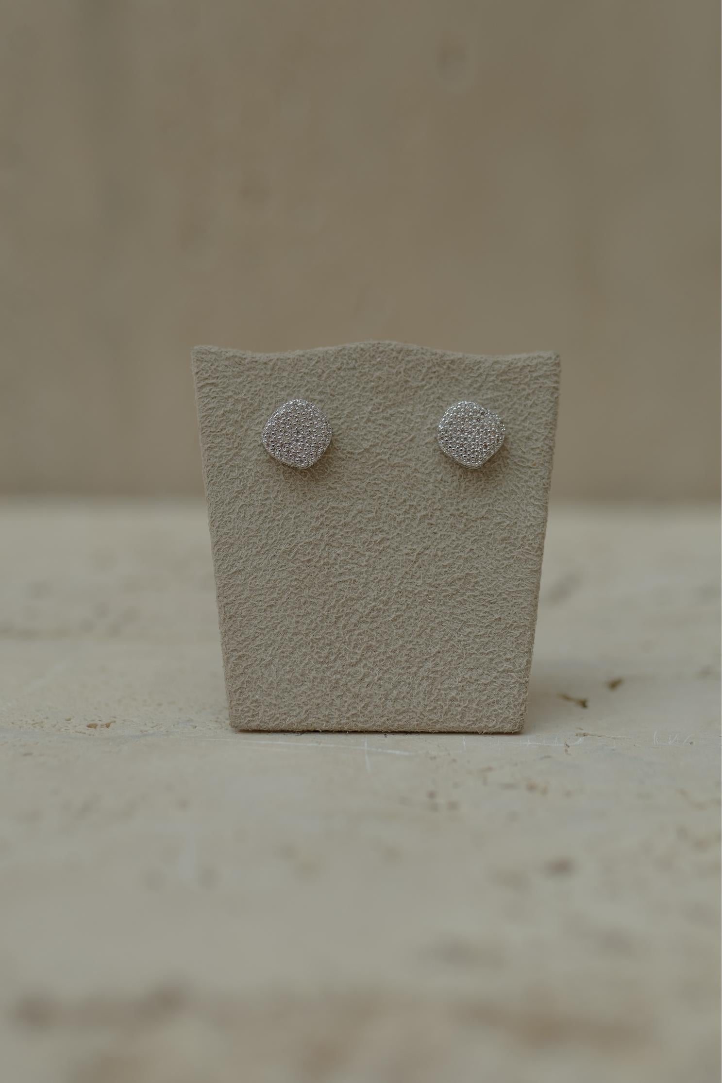 Brinco no formato orgânico todo cravejado no banho de ródio branco.