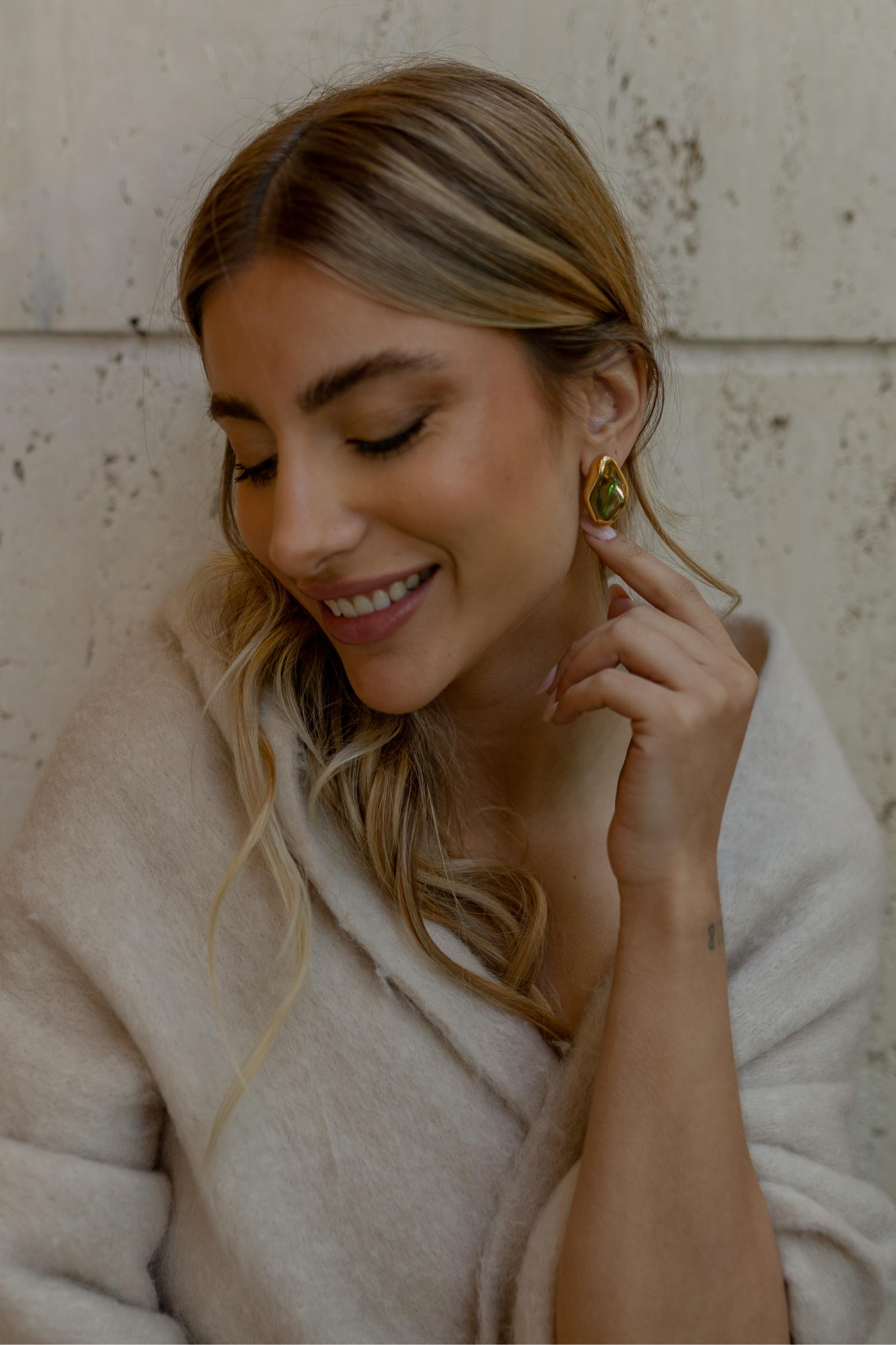 Brinco orgânico com acabamento liso no banho de ouro 18k.