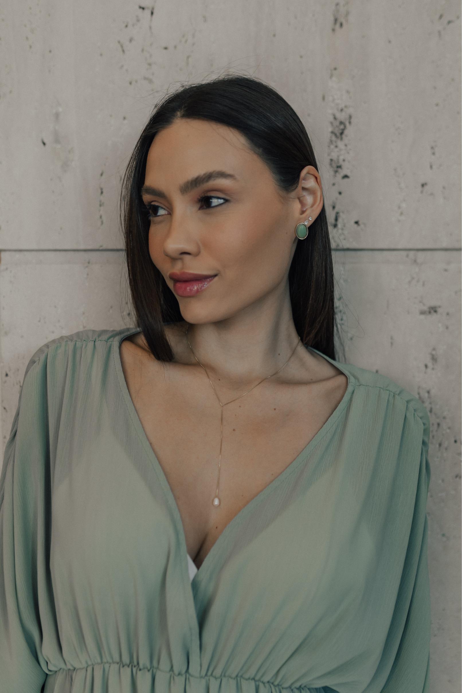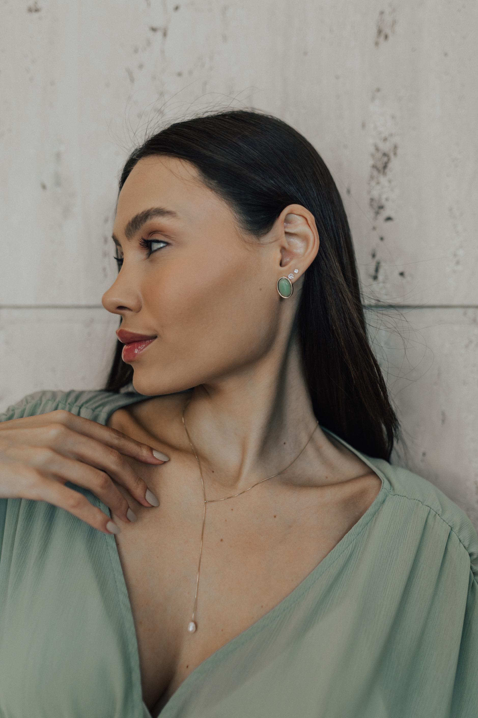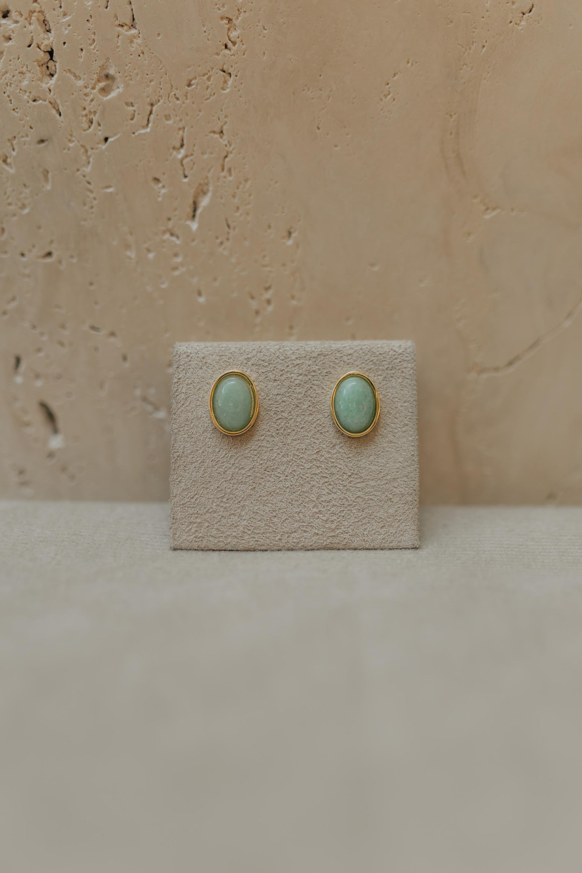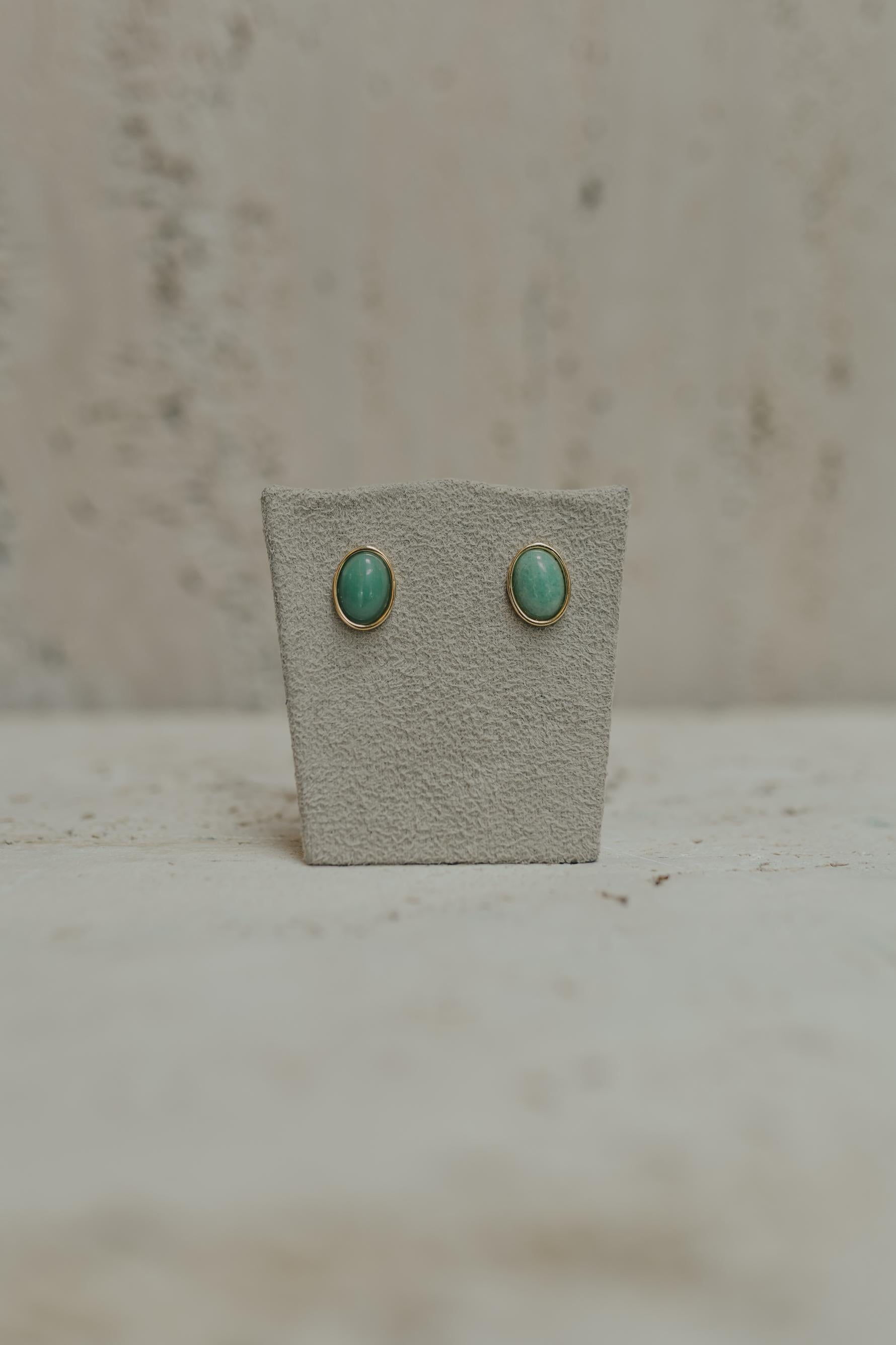 Brinco oval com pedra natural no banho de ouro 18k.