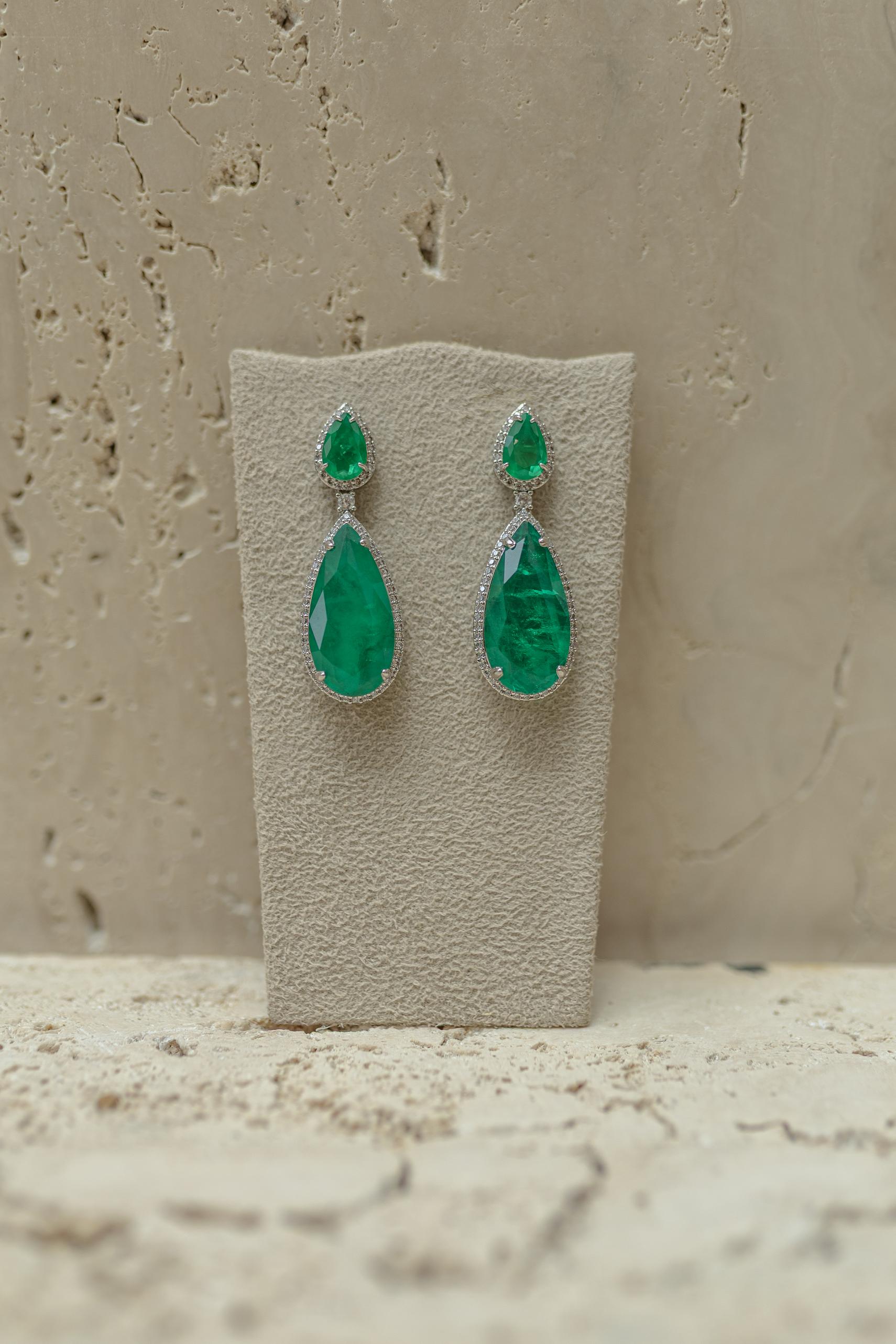 • Brinco Pêndulo Esmeralda Fusion Ródio Branco