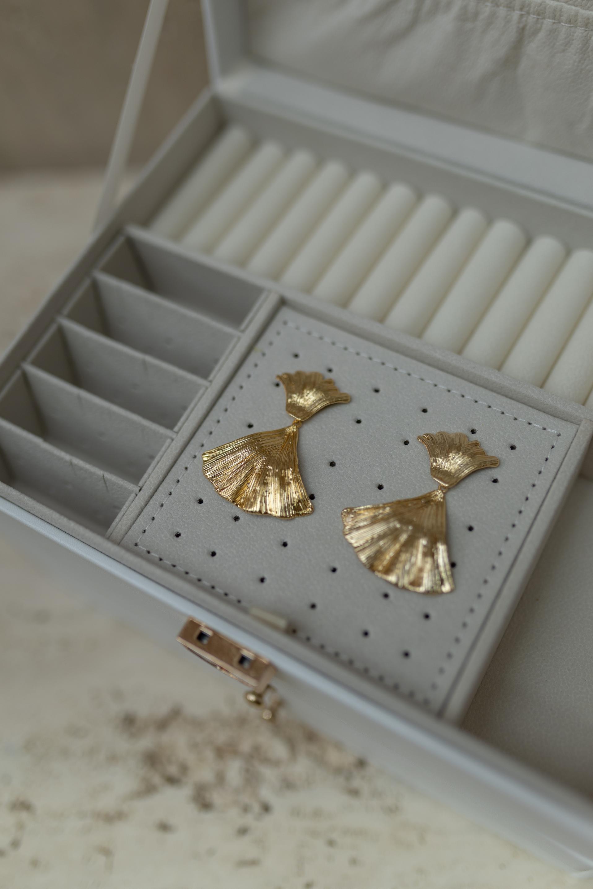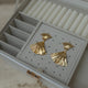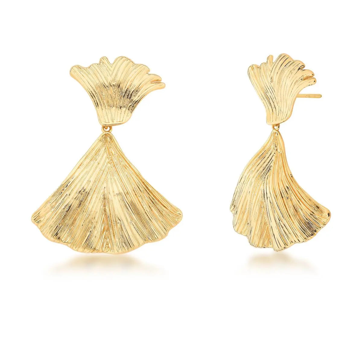 Brinco pêndulo em formato de pétalas e banho de ouro 18k.