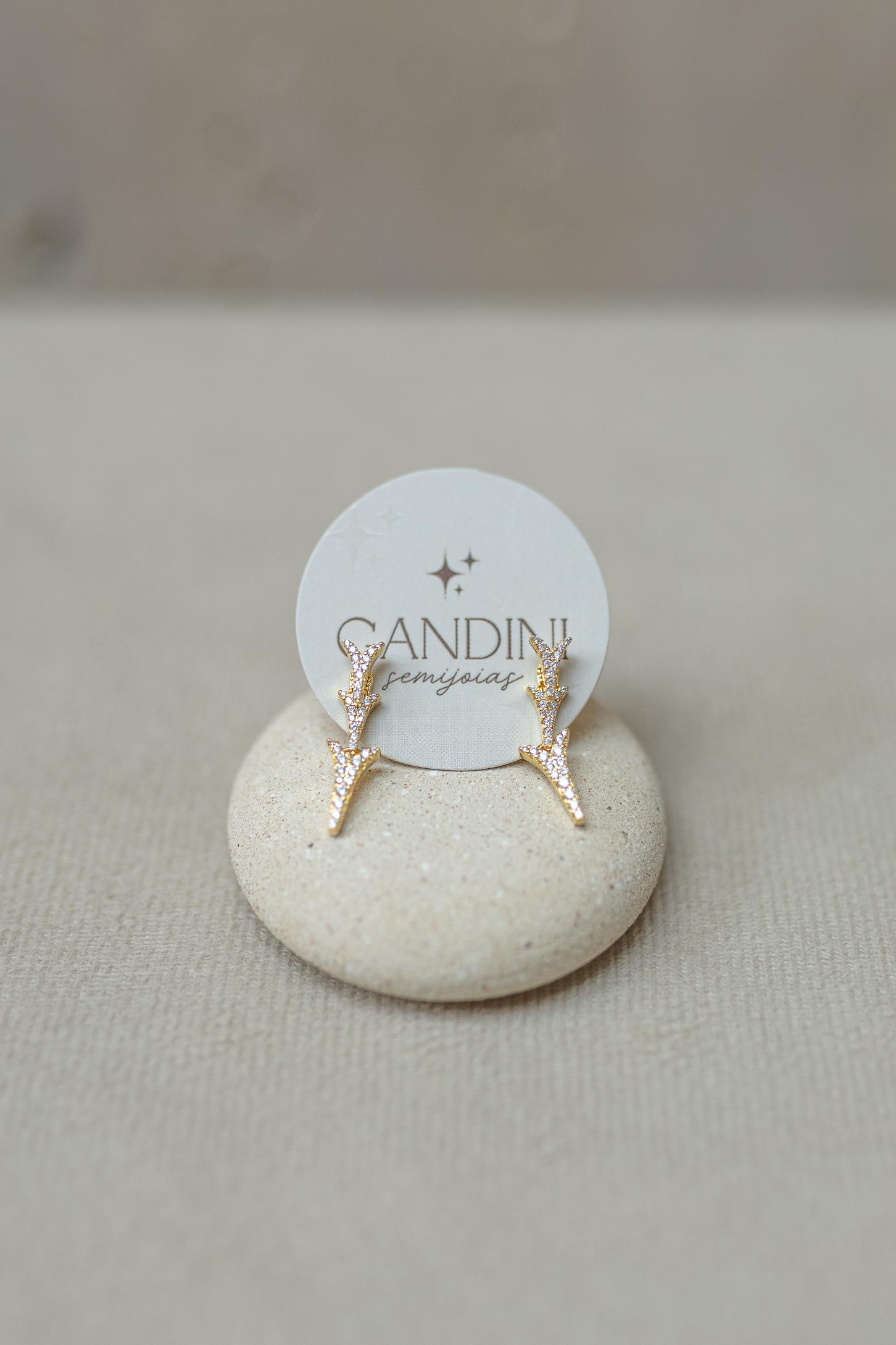 Brinco Pêndulo setas cravejadas no banho de ouro 18k
