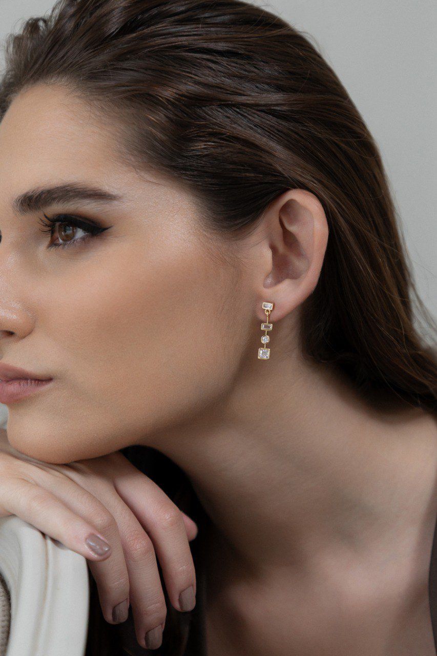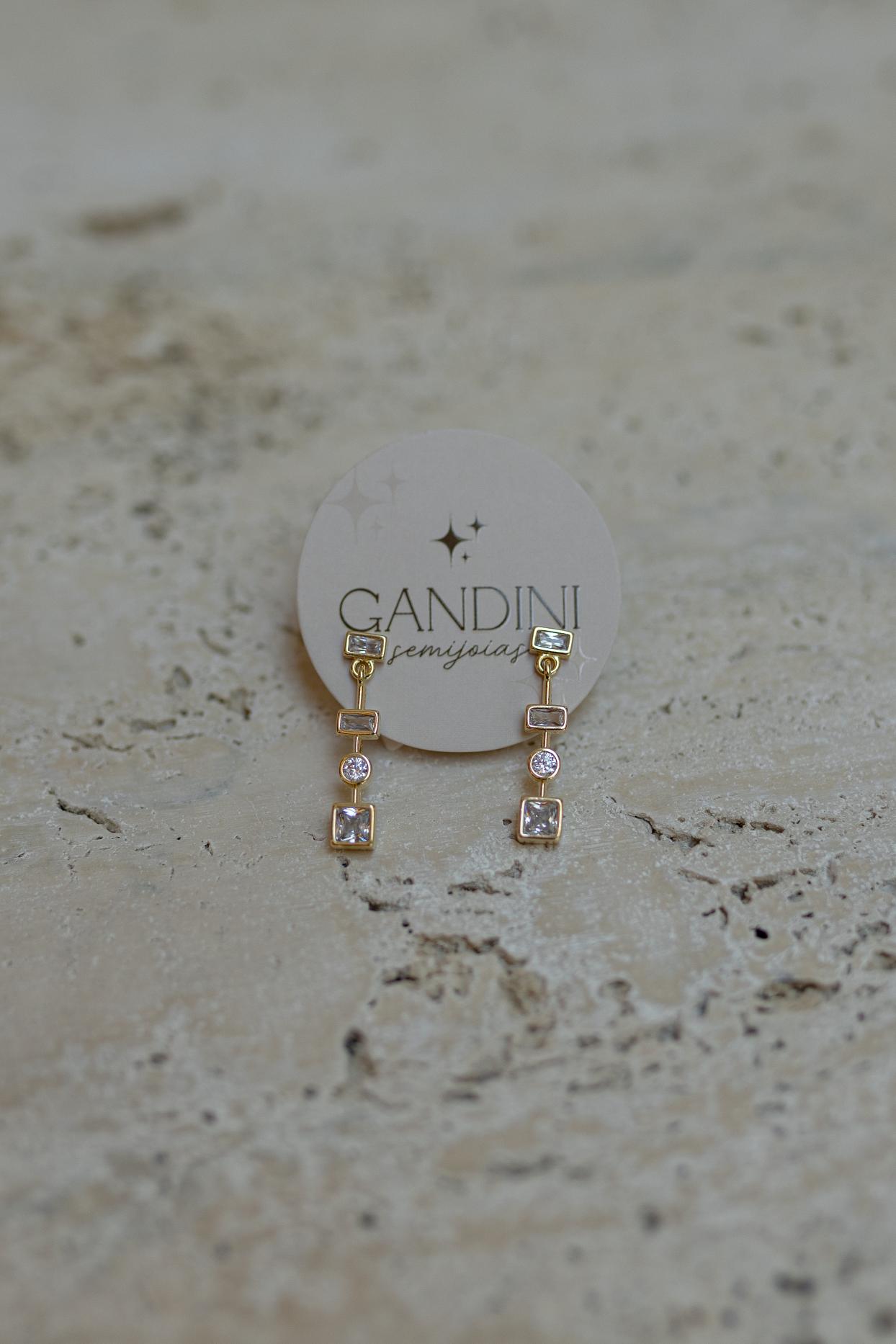 Brinco pêndulo com cristais no banho de ouro 18k.