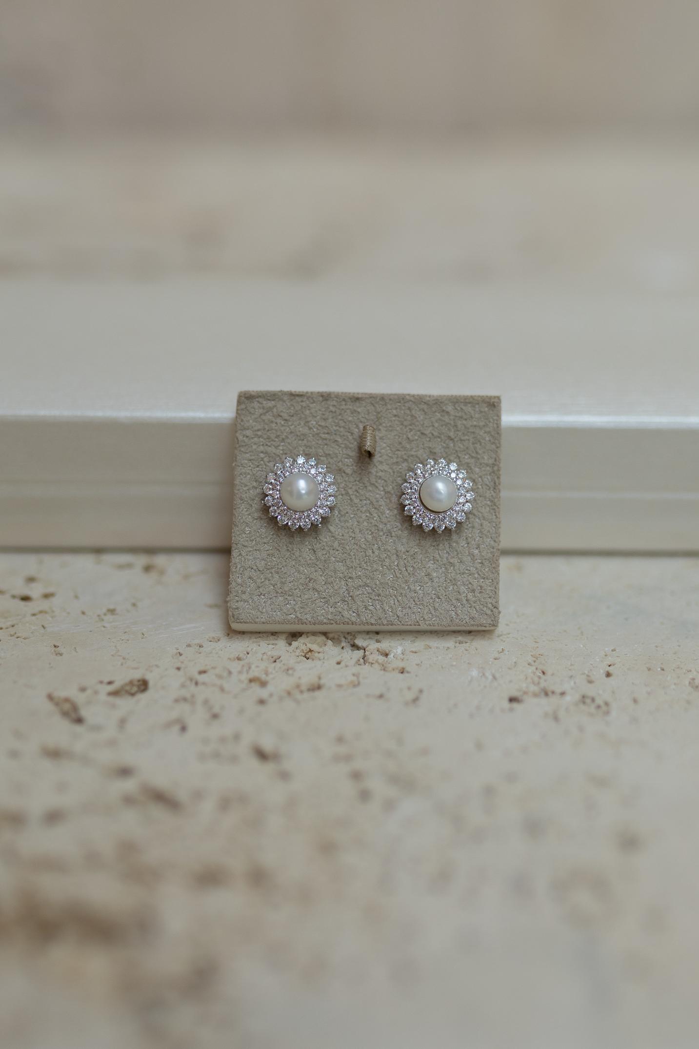 Brinco Pérola Central Cravação Dupla Prata 925 Ródio Branco