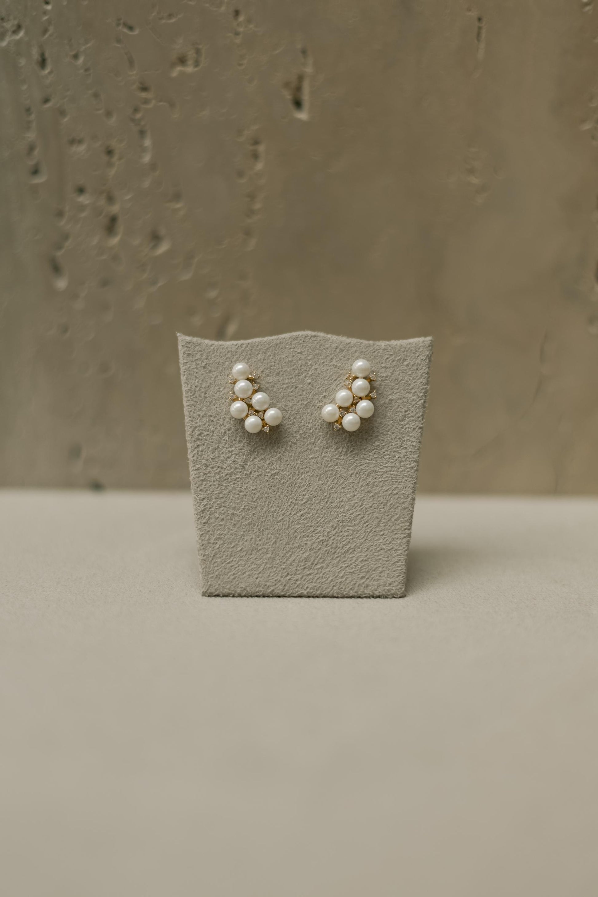 Brinco ear cuff de pérolas com detalhes em zircônias na cor cristal no banho de ouro 18k.