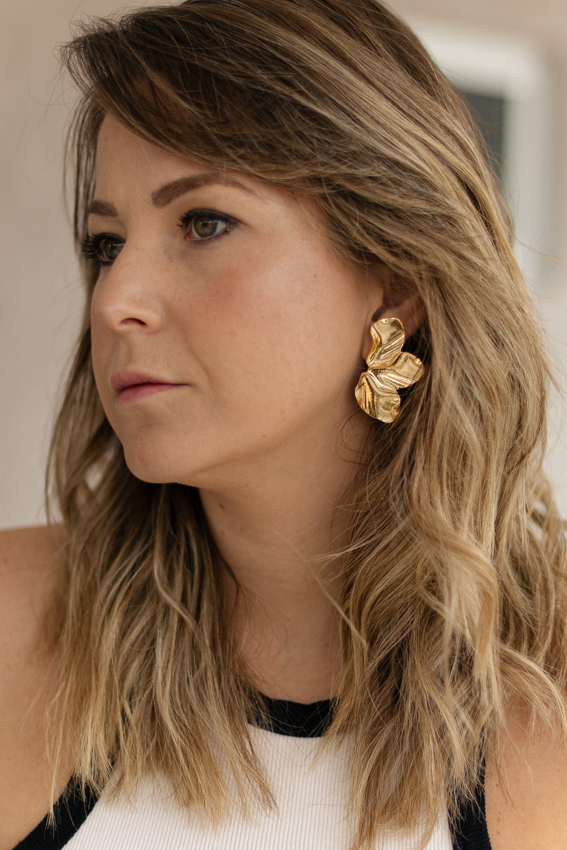 O brinco perfeito para quem ama peças modernas, com acabamento sem igual, o brinco de pétalas todo ouro é perfeito!