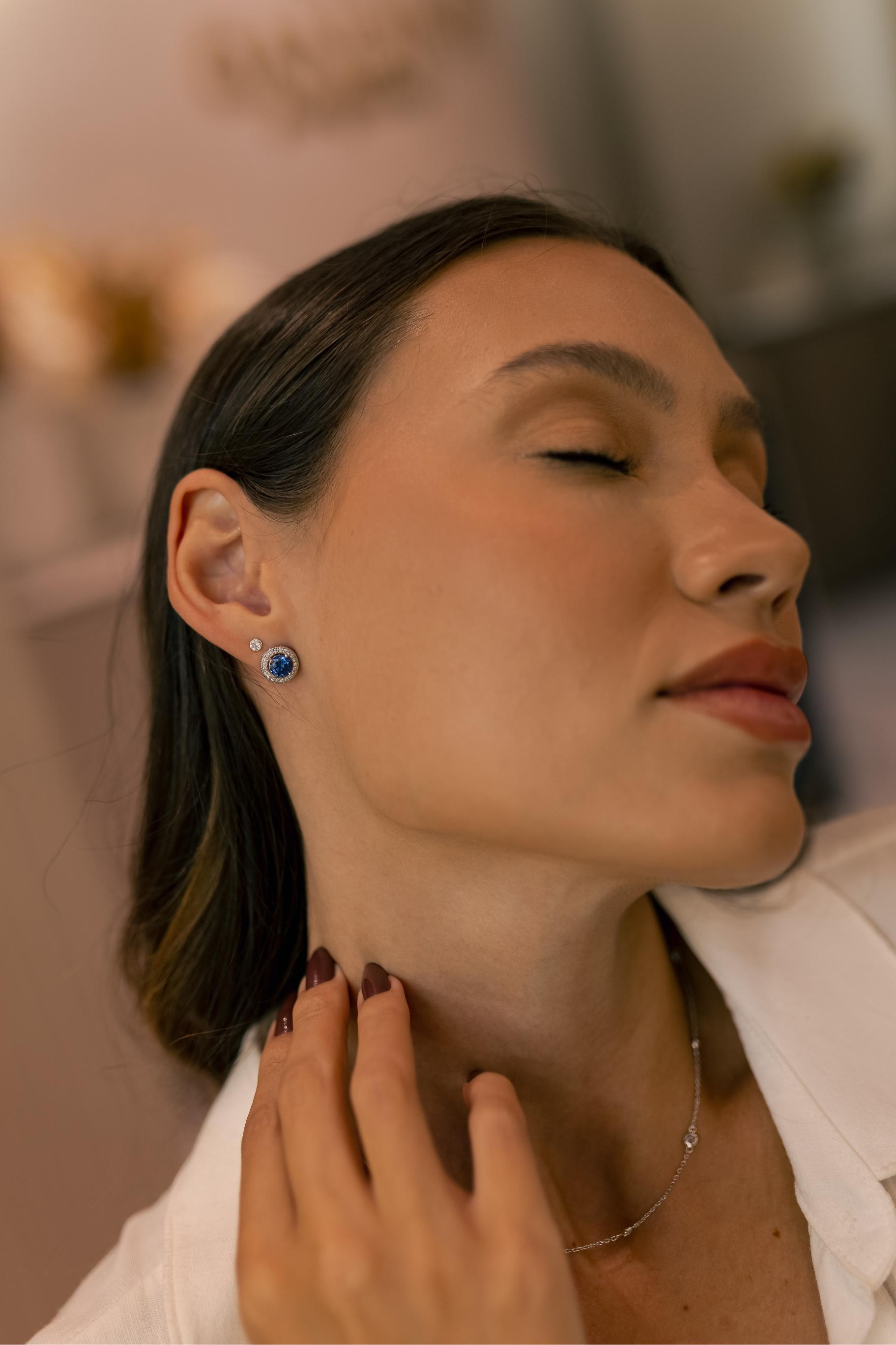 Super elegante com sua zircônia central envolta por cravação de micro zircônias e banho no ródio branco.