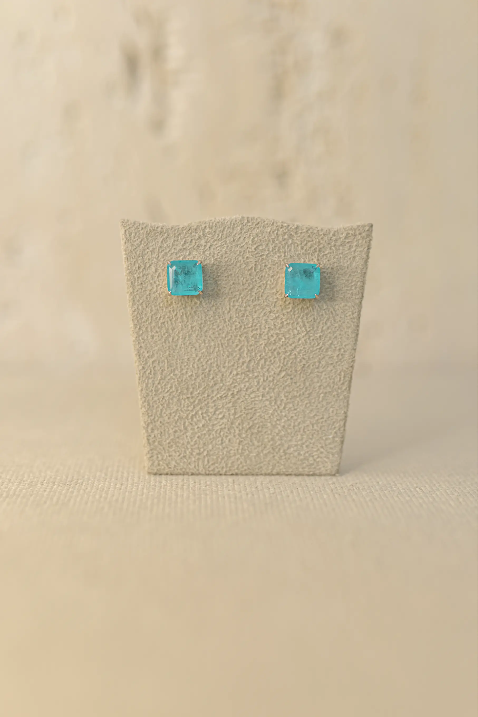 Brinco no formato quadrado com zircônia turmalina fusion na prata 925 com banho de ródio branco.