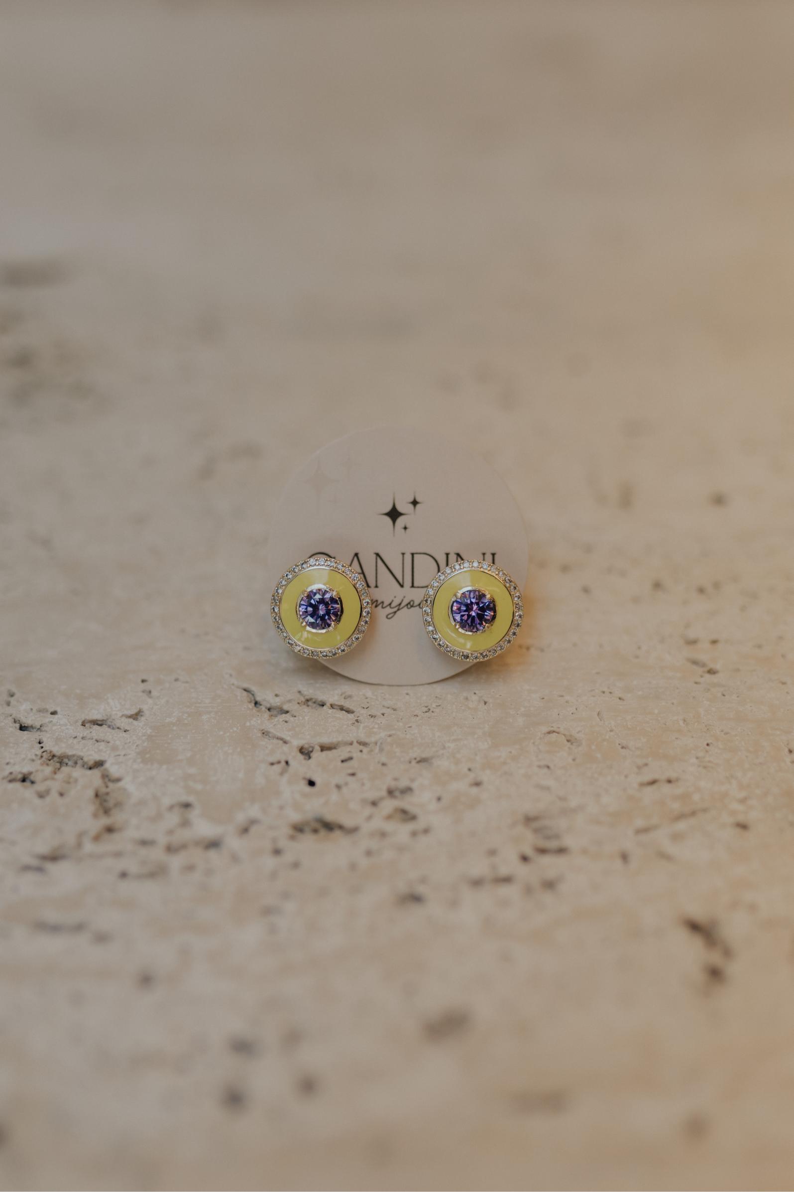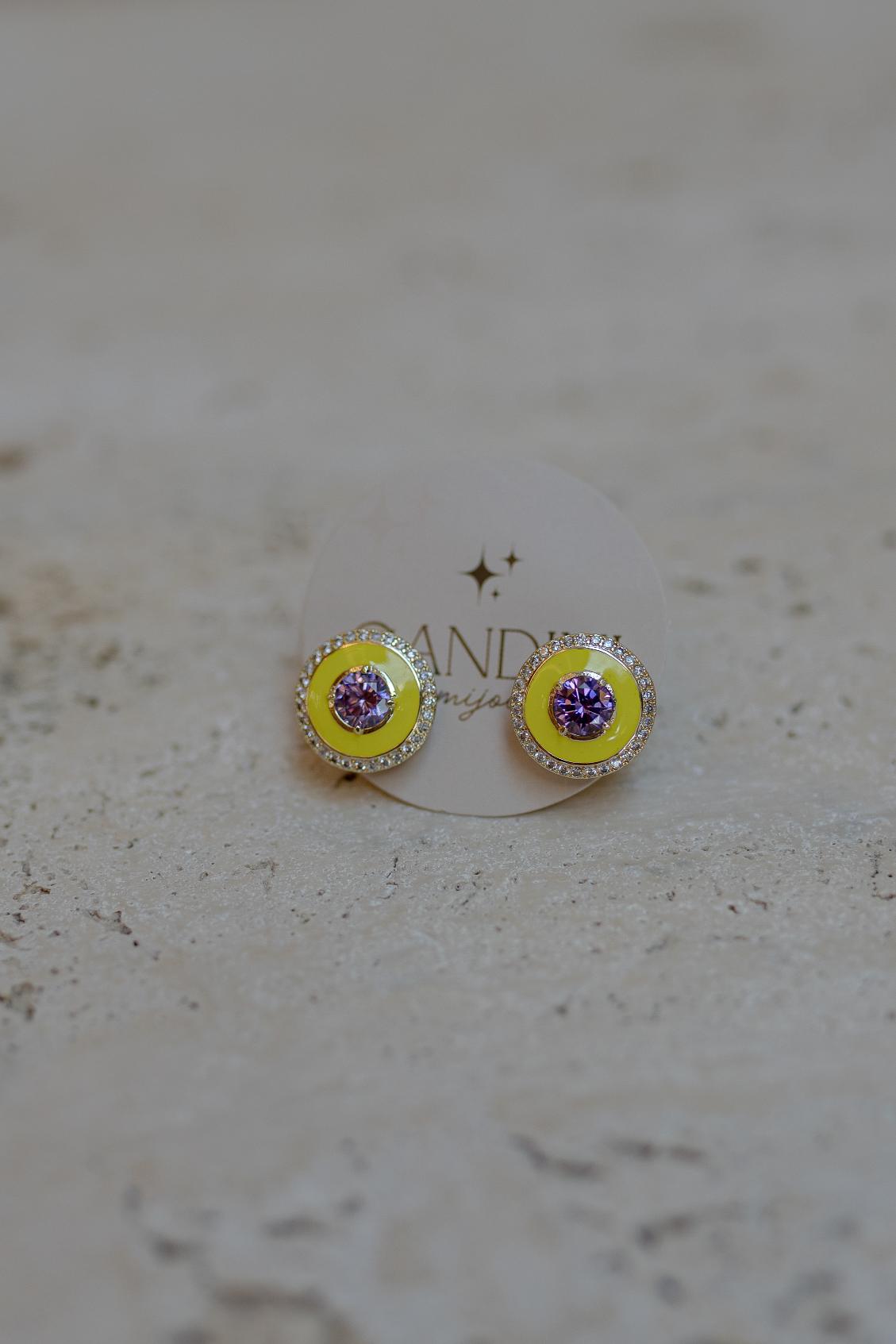 Brinco esmaltado em formato de olho grego com borda cravejada no banho de ouro 18k.