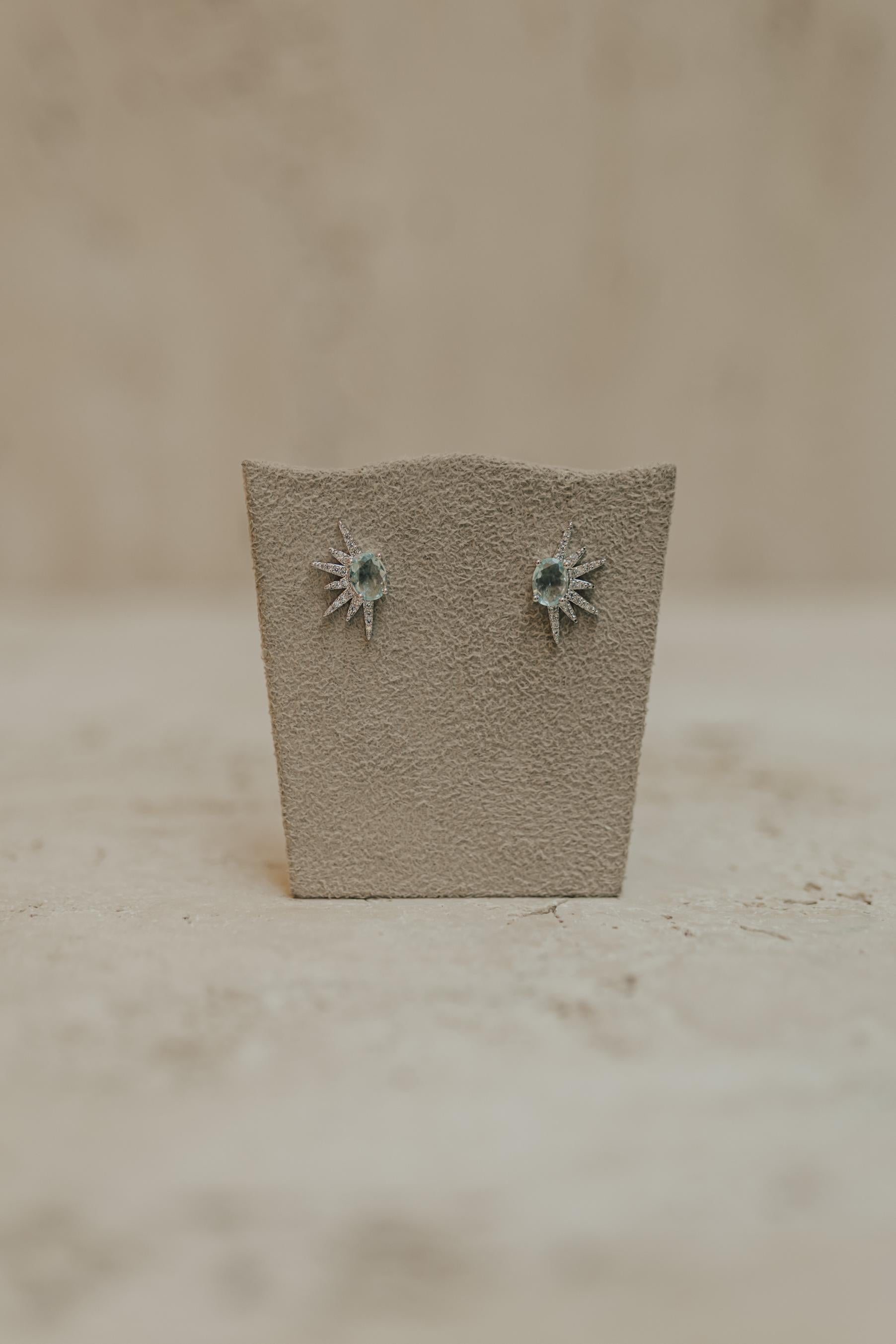 Brinco com zircônia oval de 5mm e micro zircônias na cor cristal formando um raio no banho de ródio branco.