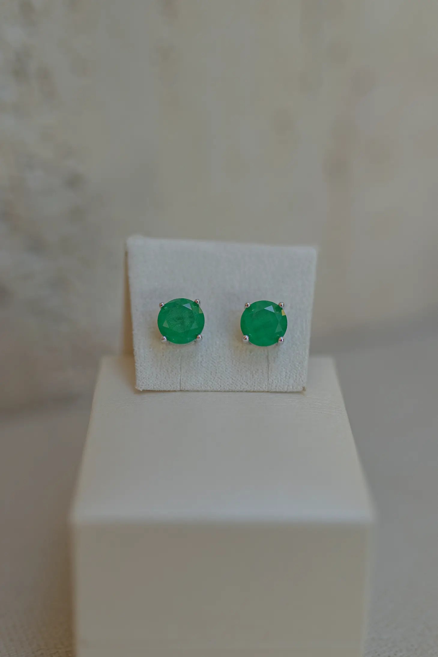 Brinco ponto de luz 4 garras na pedra esmeralda no banho de ródio branco.