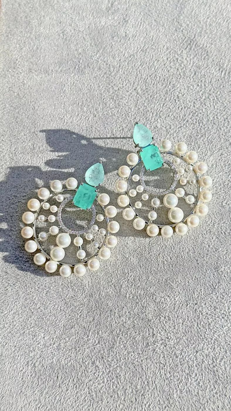 Brinco Redondo Pedra Fusion e Pérolas Ródio Branco