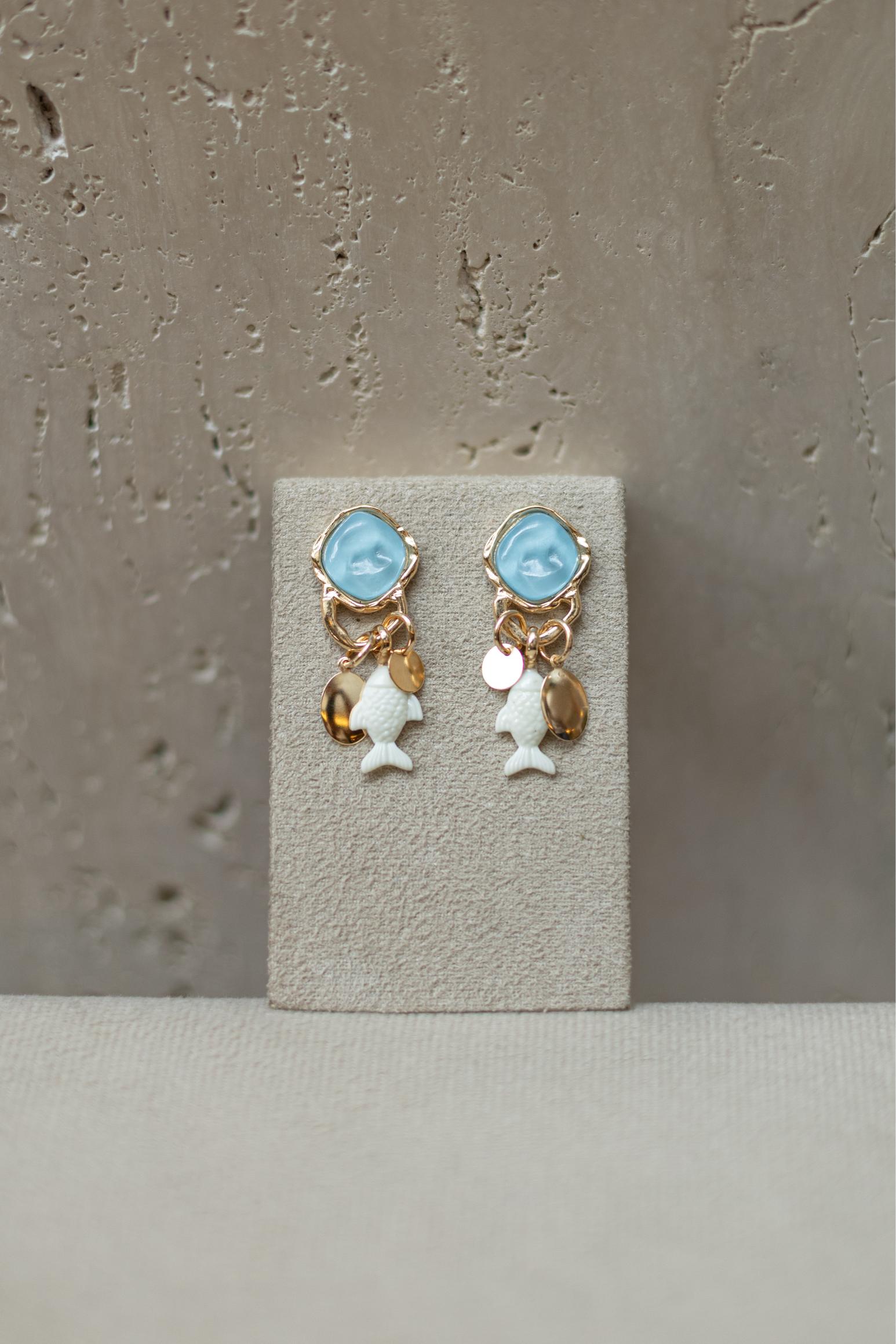 Brinco Resina Ovalada Azul Peixe Dourado