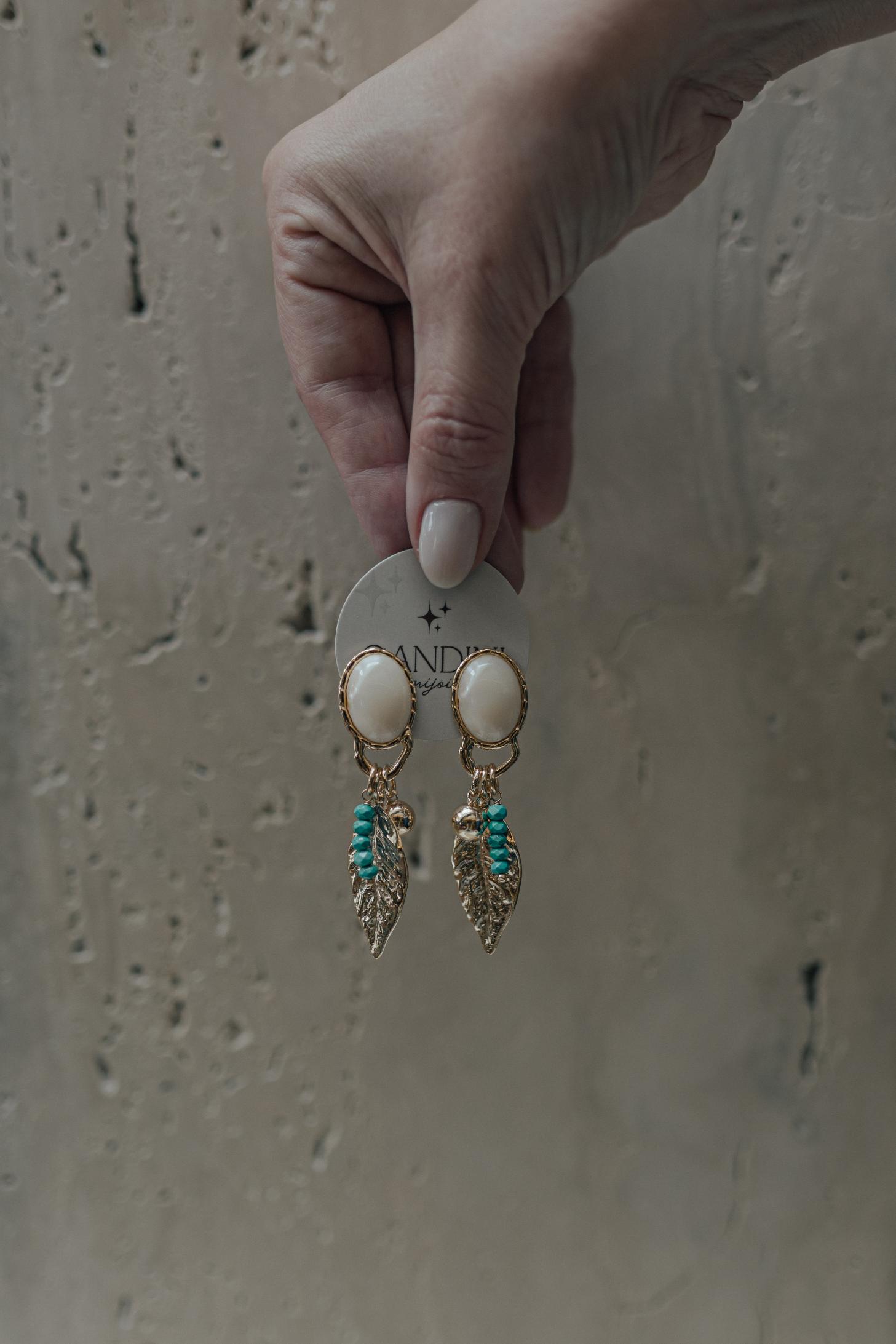 • Brinco Resina Perolado Folha Dourado