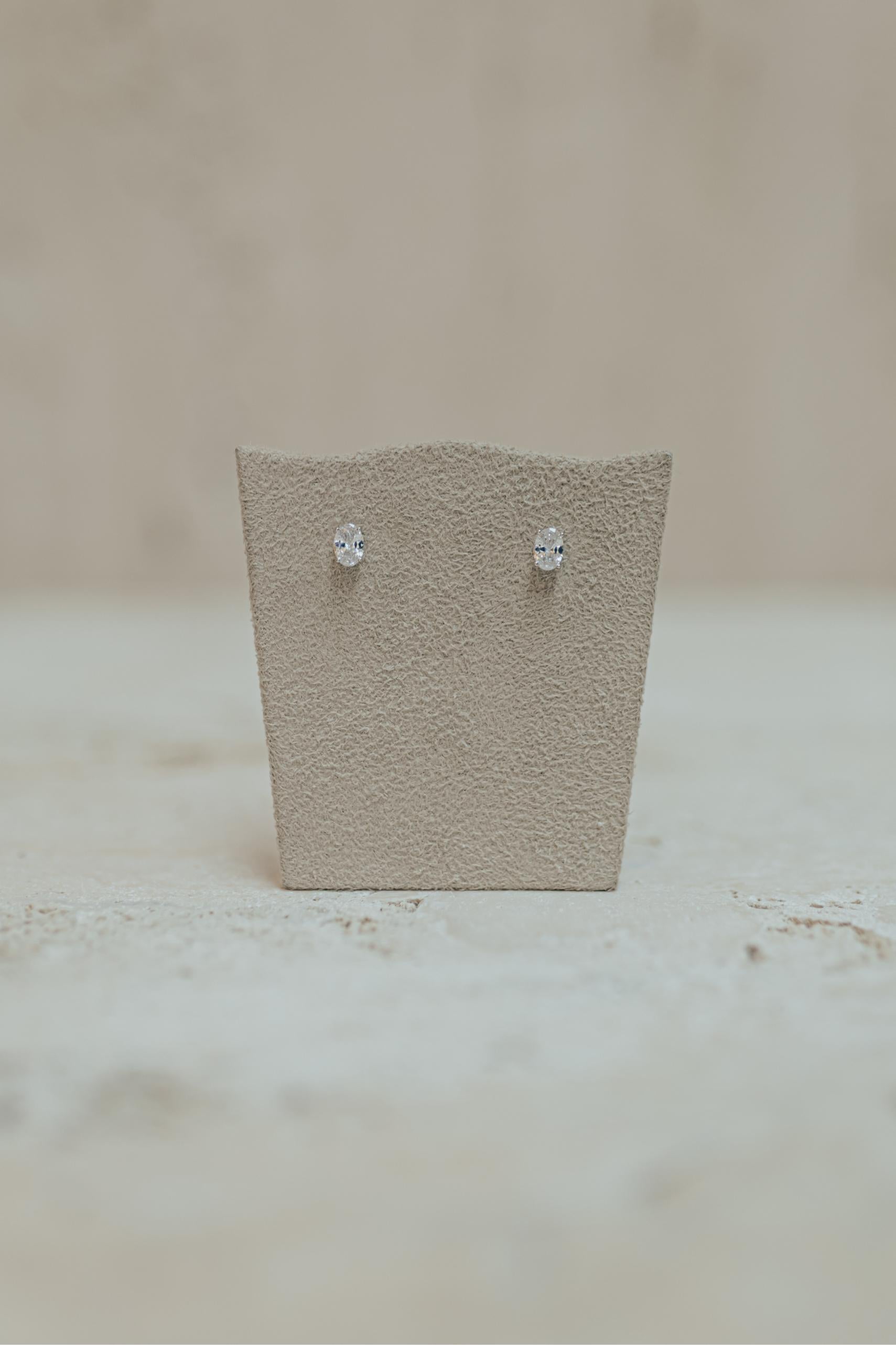 • Brinco Solitário Mini Oval Prata 925 Ródio Branco