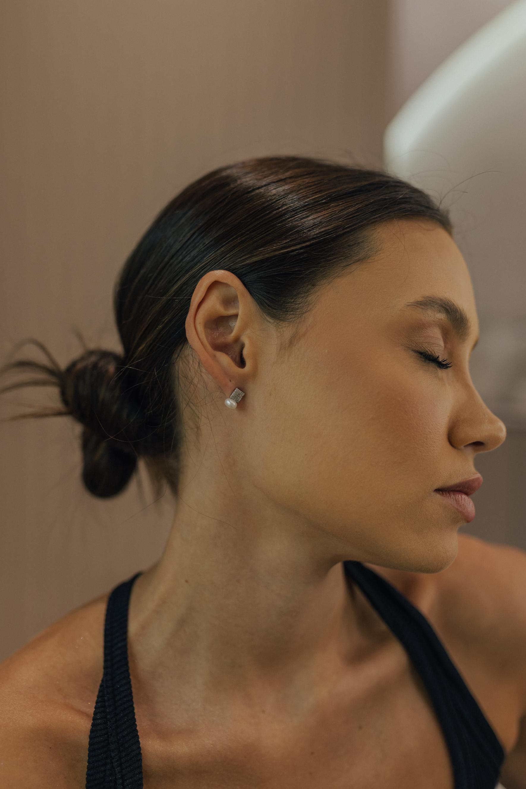 Brinco Square Cristal Pérola Shell Prata 925 Ródio Branco