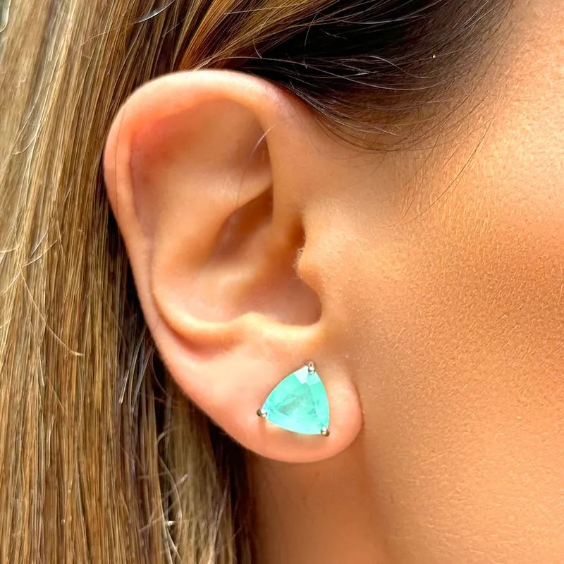 Brinco Triangular Turmalina Fusion Prata 925 Ródio Branco