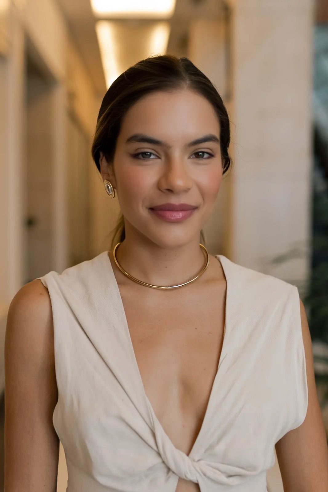 Colar choker aro rígido, com design de tubo e acabamento liso.