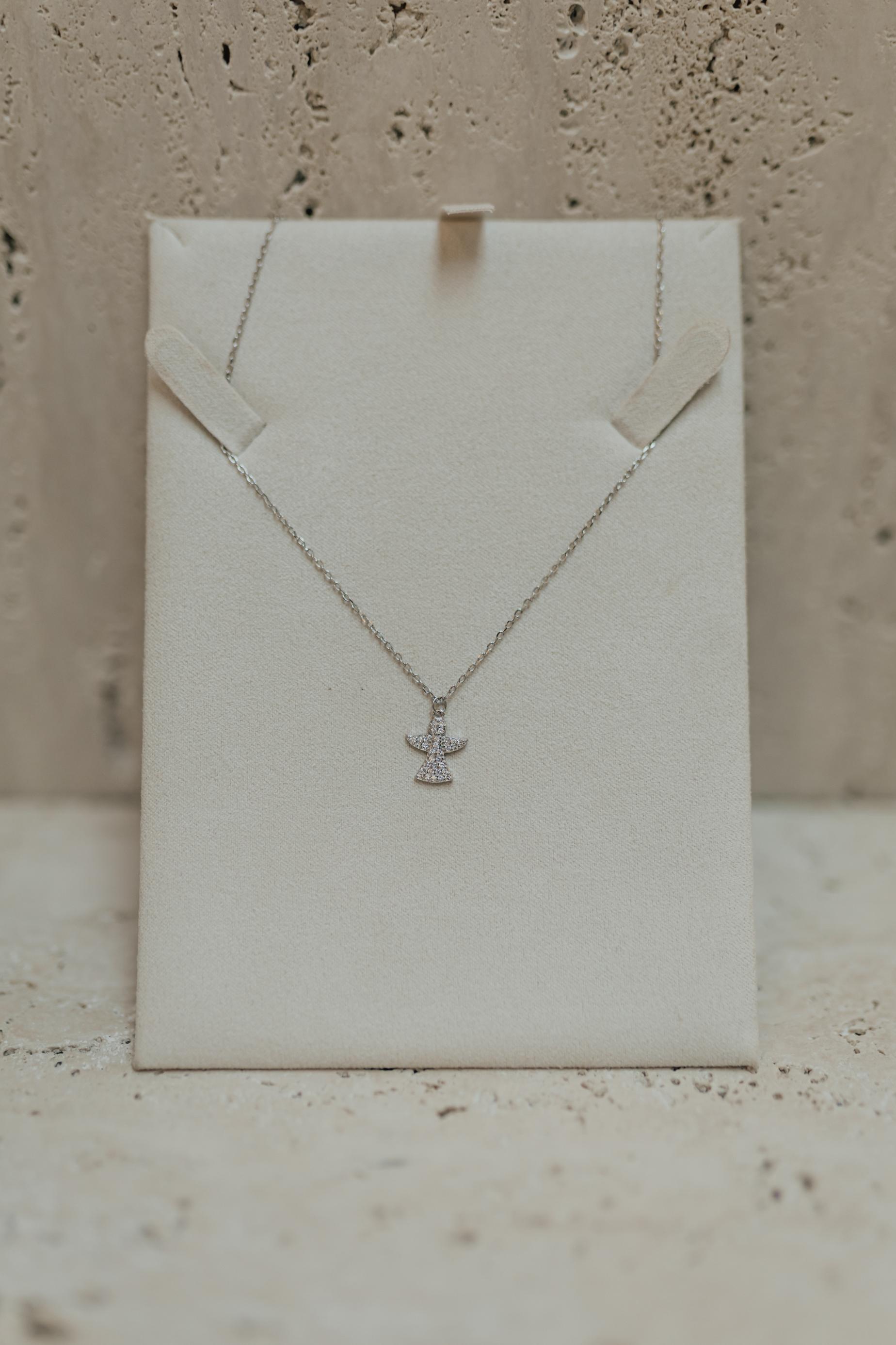 Colar com pingente de anjo da guarda na prata 925 e banho de ródio branco.