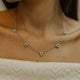 Choker com 5 corações com pedra turmalina fusion no banho de ródio branco.